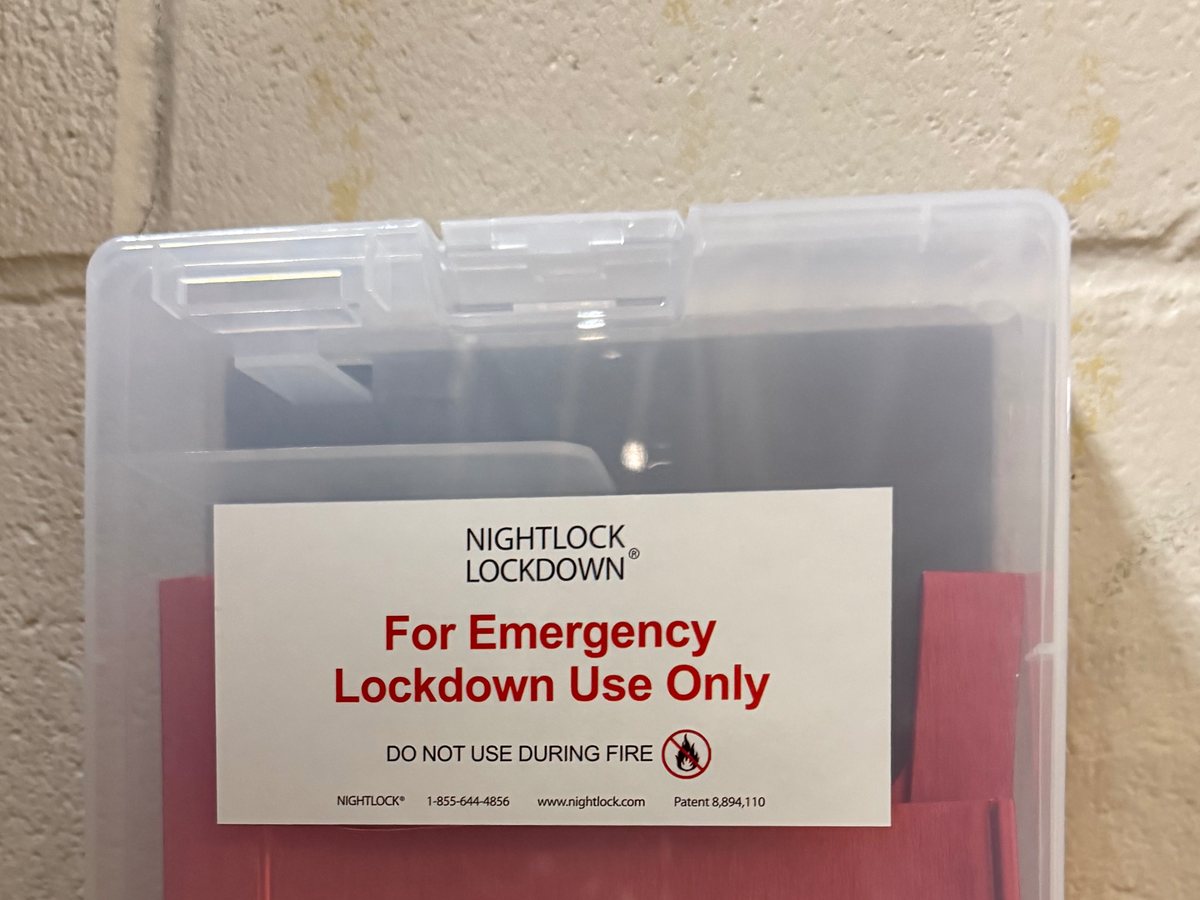In March 2024, the taxpayers of Goffstown voted to fund the purchase of door barricading devices for all classroom doors in our schools. The Nightlock devices were successfully acquired, and thanks to the generous donation of time by James of Jacob’s Ladder Construction, they have already been installed at Mountain View Middle School.