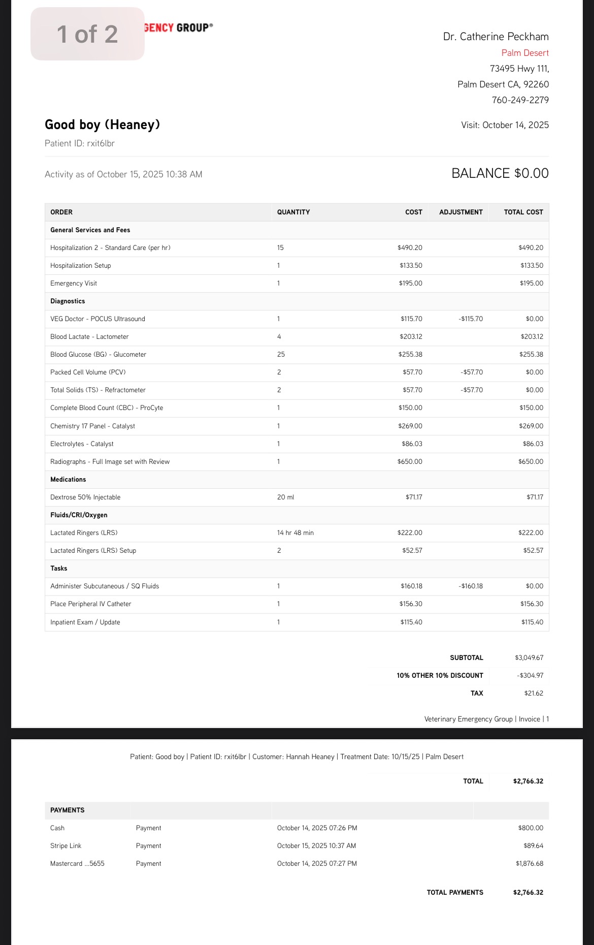 As you know ER vet bills are pricey, a 12 hour stay at VEG was almost $3,000; so I transferred him to my Vet the next day to keep costs down, where he continued to be monitored and tested for Parvo and parasites. Parvo results came back negative, but he is being dewormed currently with Panicure.