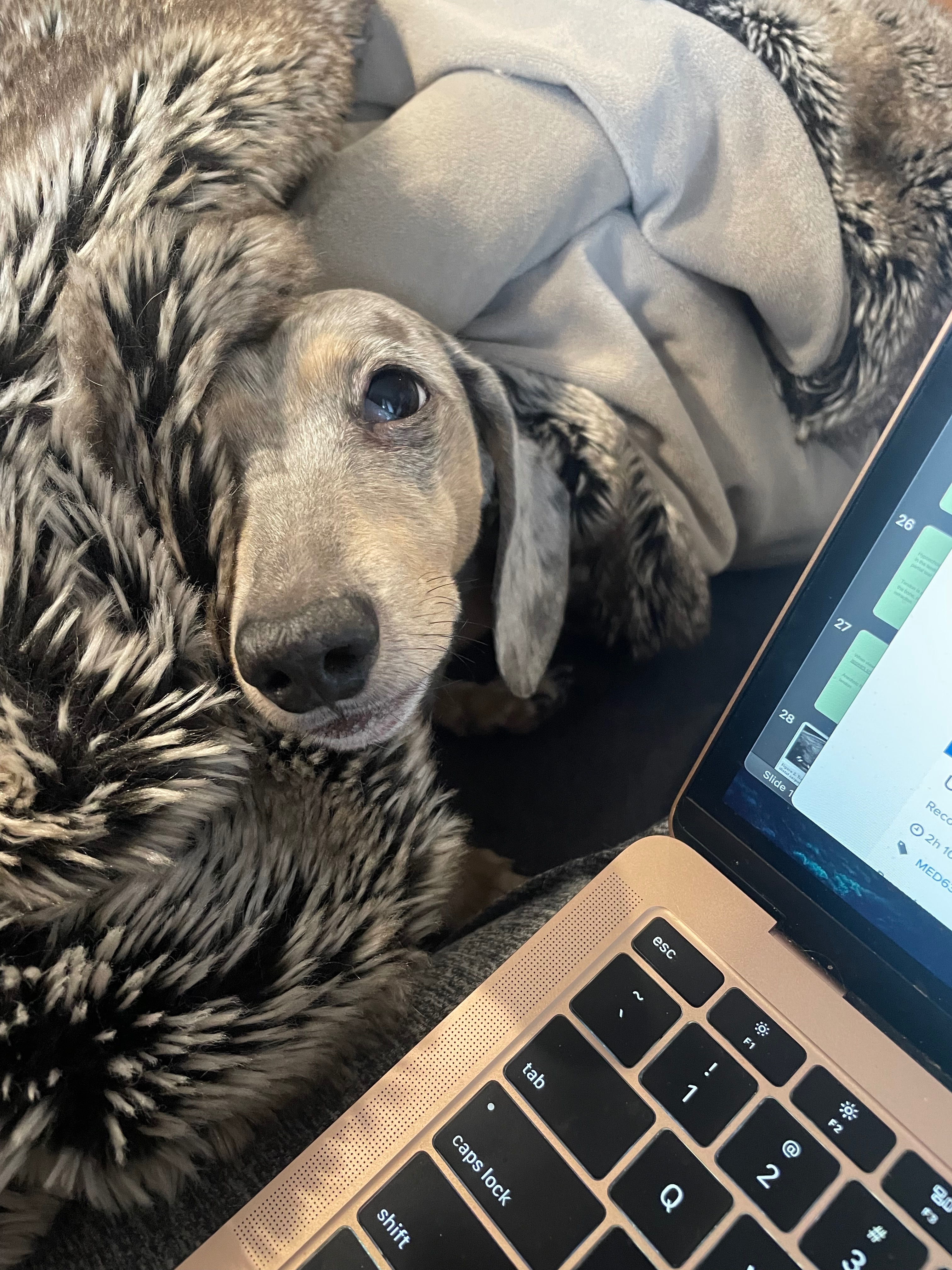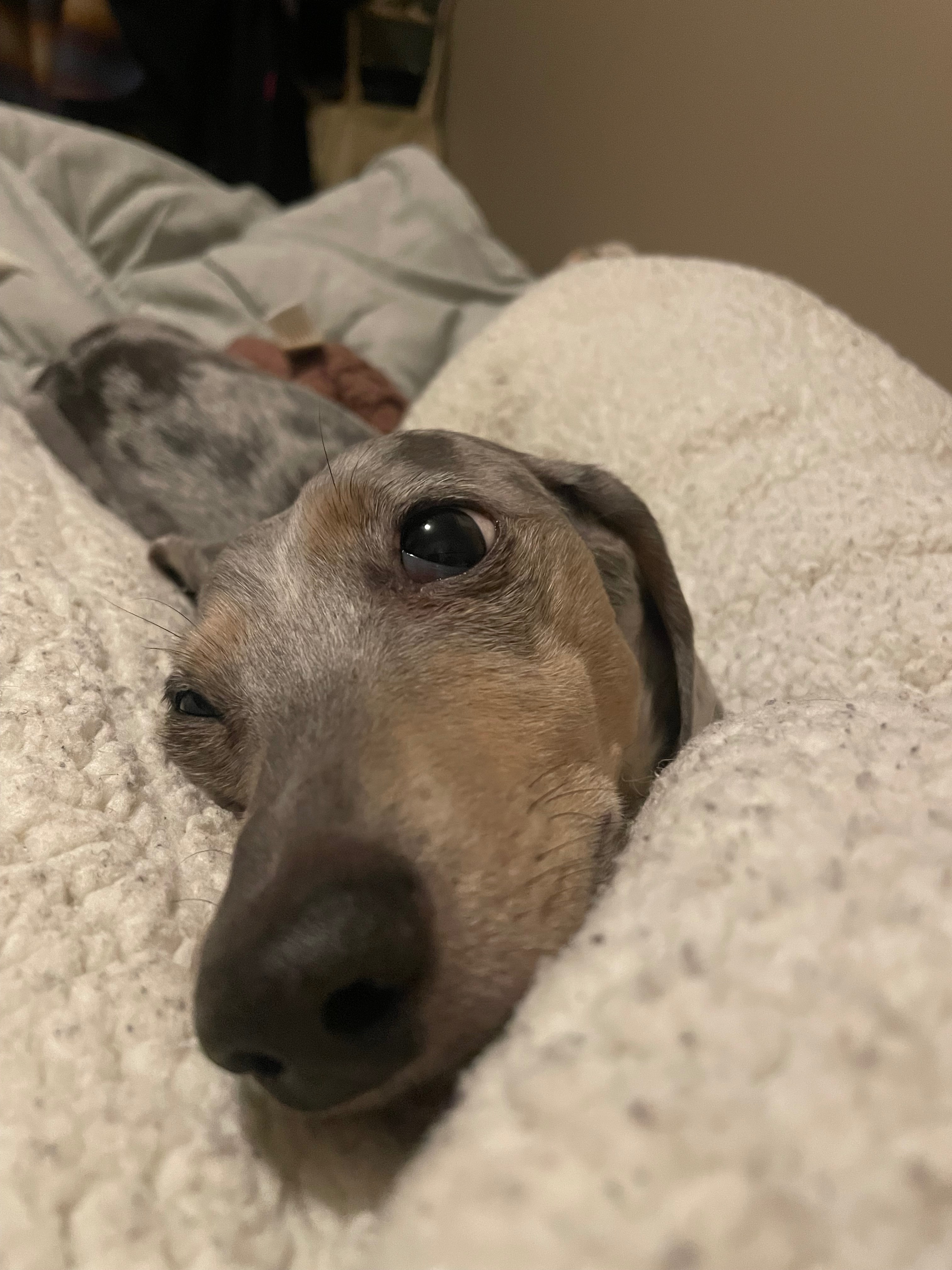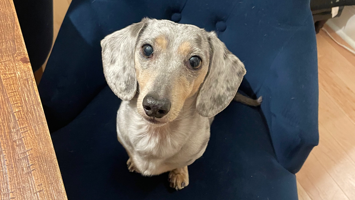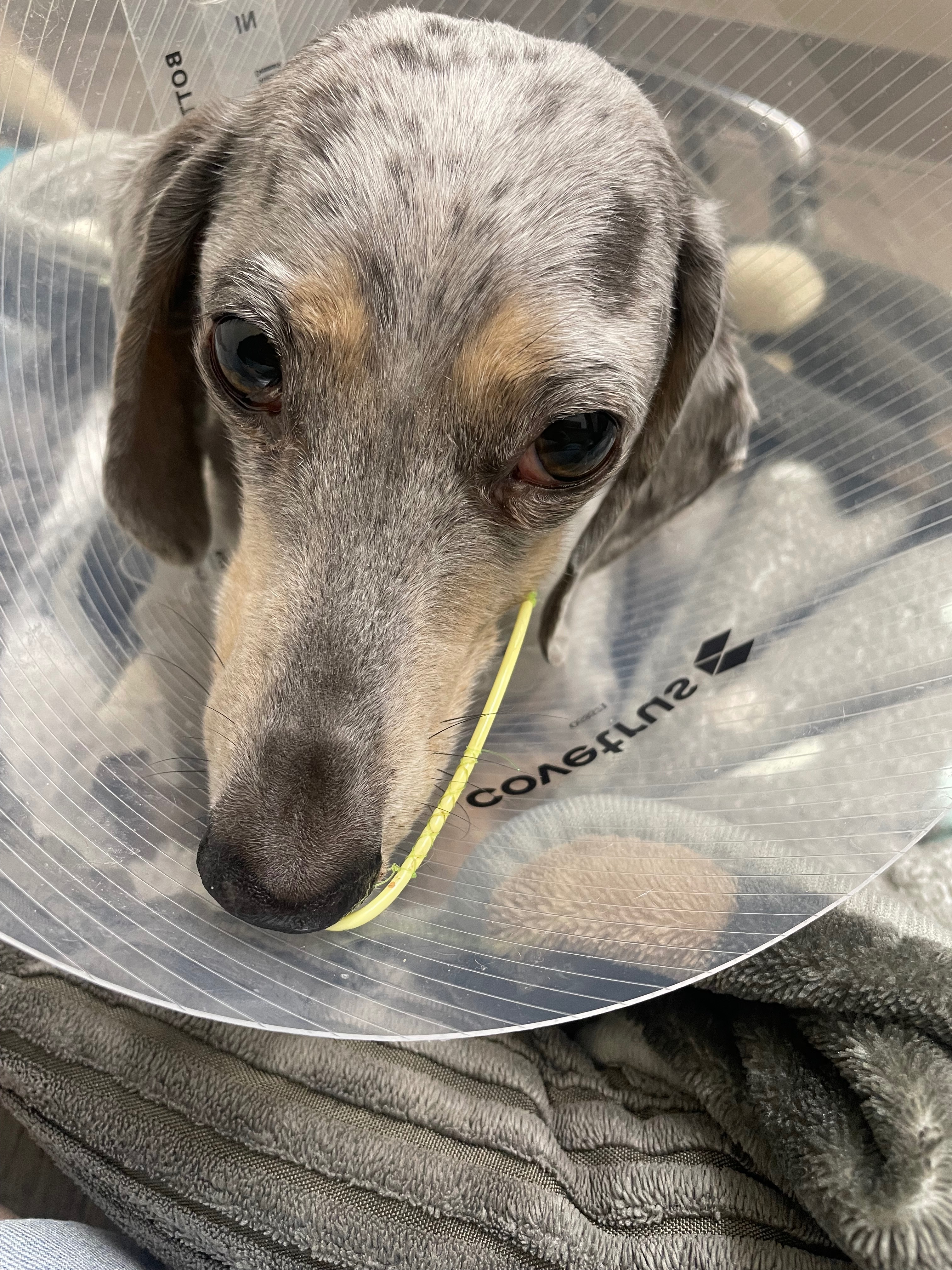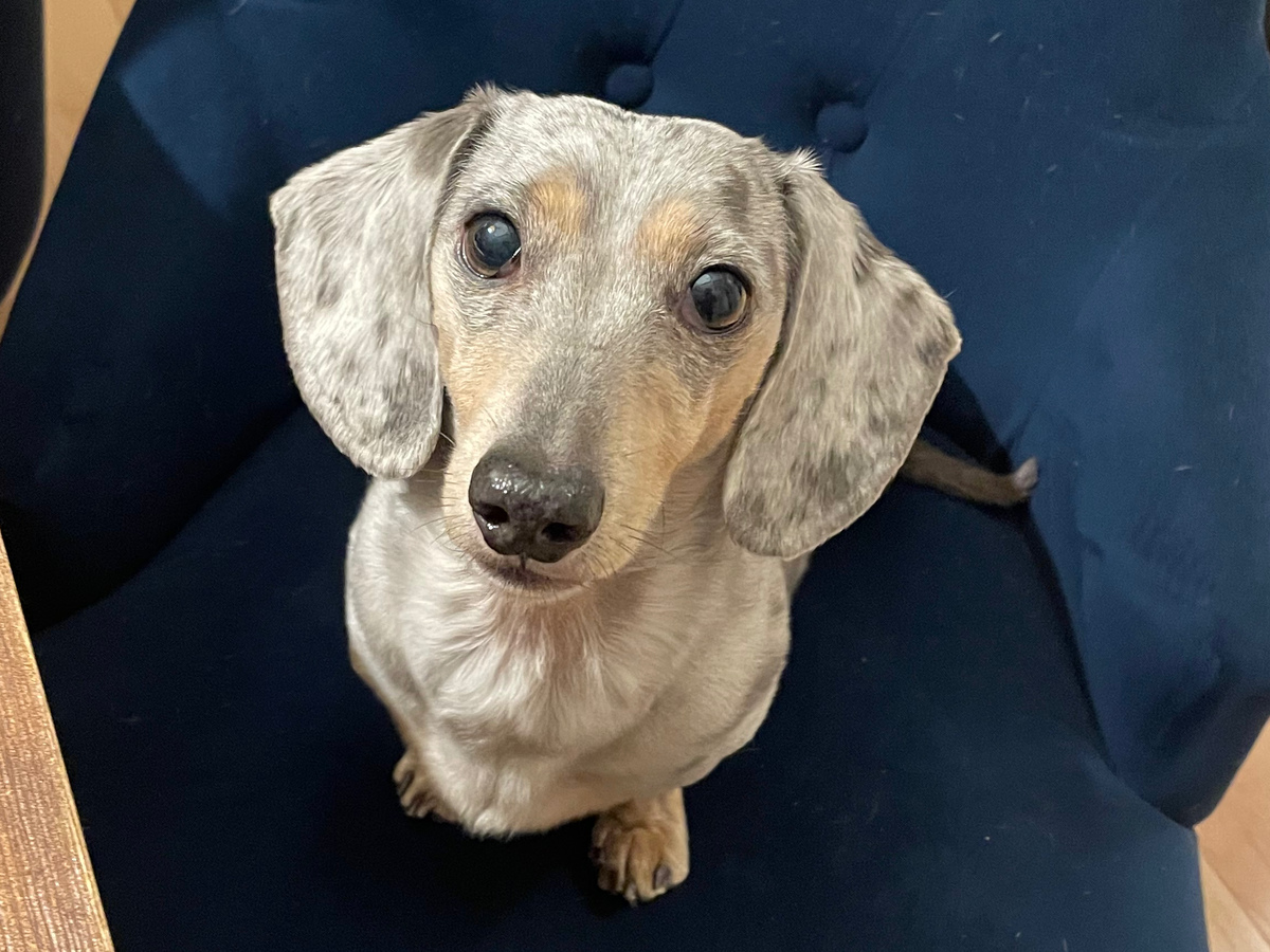 Goose is still a young dachshund who was rushed to the emergency vet after becoming critically ill very suddenly. He has been diagnosed with biliary cholangitis, a serious liver condition that came on rapidly and without warning. Since then, he has been hospitalized and is undergoing intensive treatment — multiple antibiotics, plasma transfusions, and a feeding tube to help support his little body while he fights.