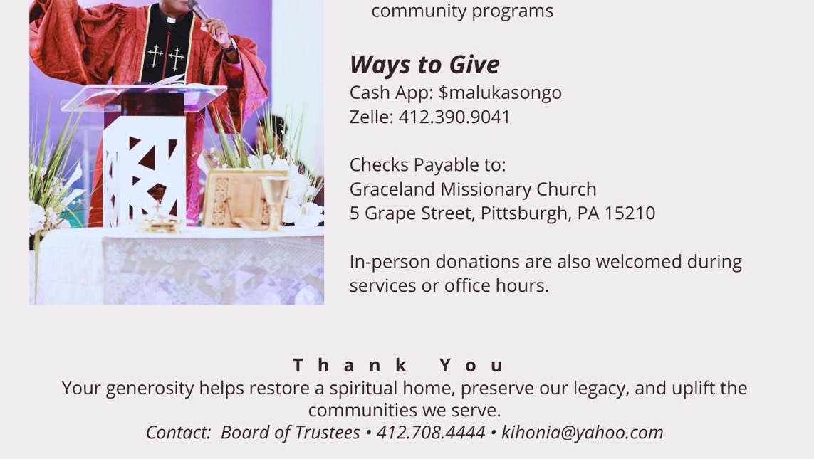 Graceland Missionary Church-the first African church in Pittsburgh-spent 15 years worshiping in borrowed spaces before finally securing our permanent home.
