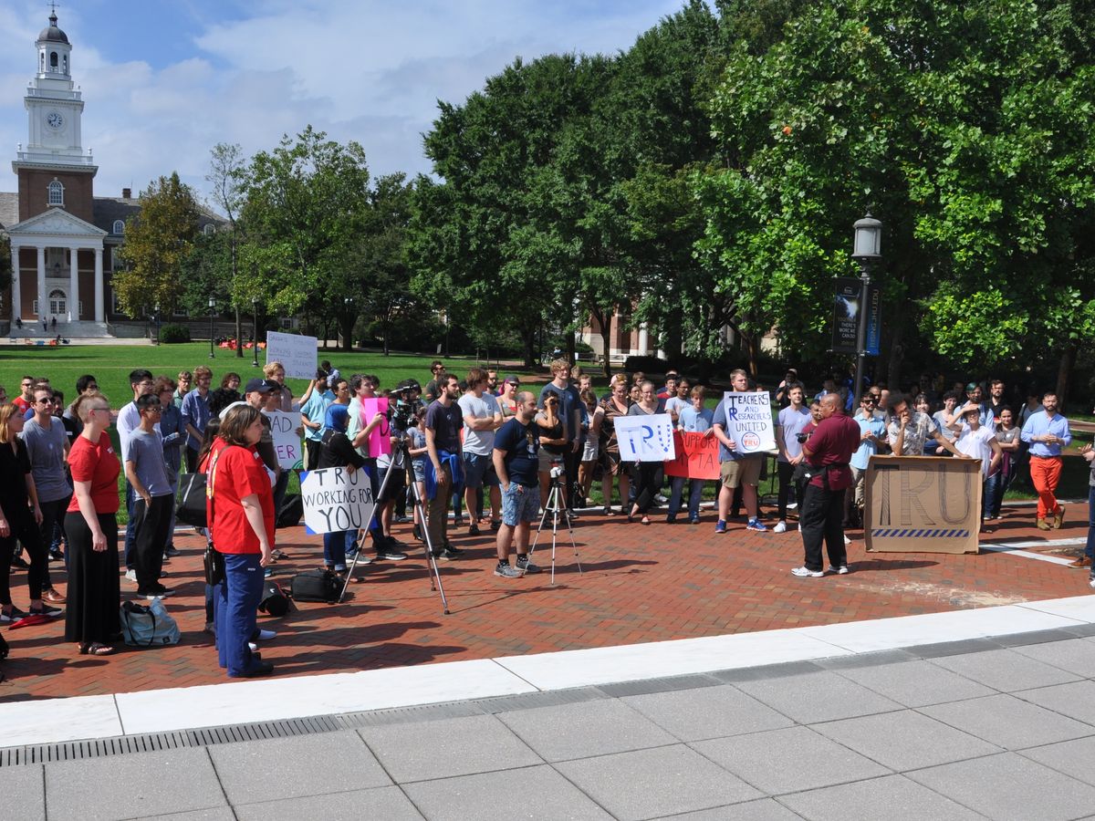 We are a movement of graduate student workers at Johns Hopkins University organizing a union in order to win improvements in our working conditions and demand dignity, respect, and a contract. From labs to classrooms, graduate workers at JHU keep the university running. As teachers and researchers, we exercise care and expertise in building the twin pillars of higher education: research and instruction. In the process of our campaign, we need assistance covering the essentials required for organizing, from posters and megaphones to pizza and folding tables. Any money you donate will go to the collective work of building a just workplace at Hopkins.