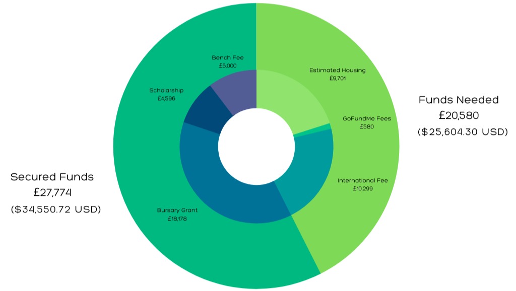 Our primary goal is to raise just over £10,000, which covers the international fee required by the university. Our secondary fundraising goal is to secure housing costs for Hannah and her family, as international students are required to pay six months in advance. Without our support, Hannah will not be able to accept her place in the program. In the event that we don't meet these funding goals, Hannah will reimburse any contributions made toward this campaign.