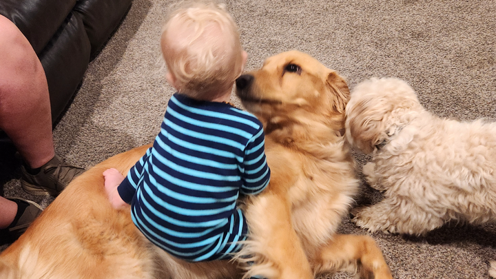 This is Harley. She is a 4-year-old golden retriever. She loves to play fetch, wrestle with her boys, and cuddle on the couch.