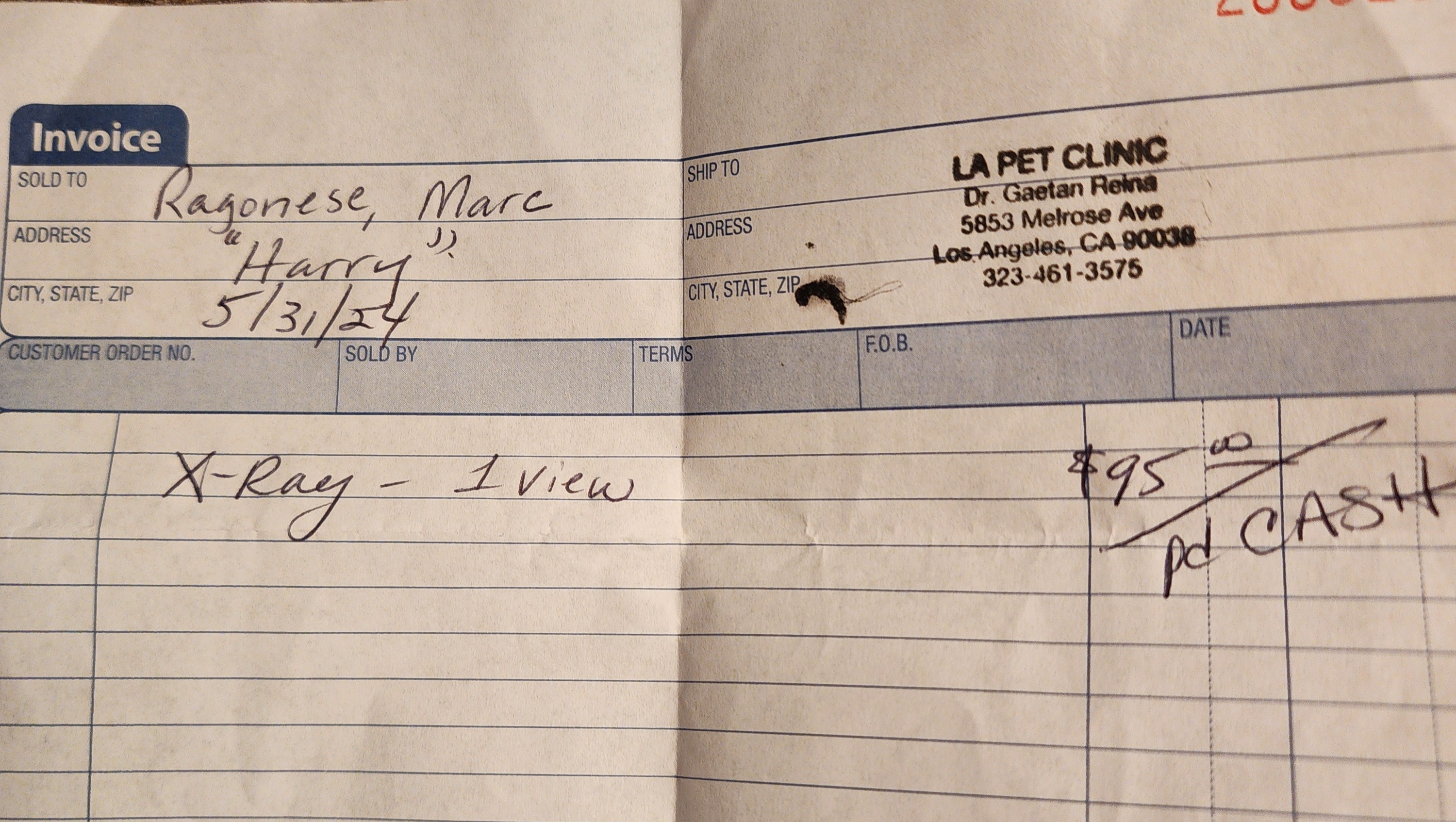 My name is Marc. My cat Harry recently fractured his back left leg. I brought him to the vet for a checkup and then a follow up visit for an x-ray. The vet concluded that Harry has cancer in the bone, and it fractured because the cancer weakened the bone. Now, they have to remove the leg and part of the hip. He has a lot of trouble getting to the litter and occasionally doesn't make it there. The vet said the cost will be from $1500 to $1800. There will be other expenses after that, but I should be able to manage that. He is in pain and needs the surgery as soon as possible. He is being treated at LA Pet Clinic in Los Angeles. The vet and the staff have been so wonderfully helpful. All money goes to the surgery. Thank you for any help.