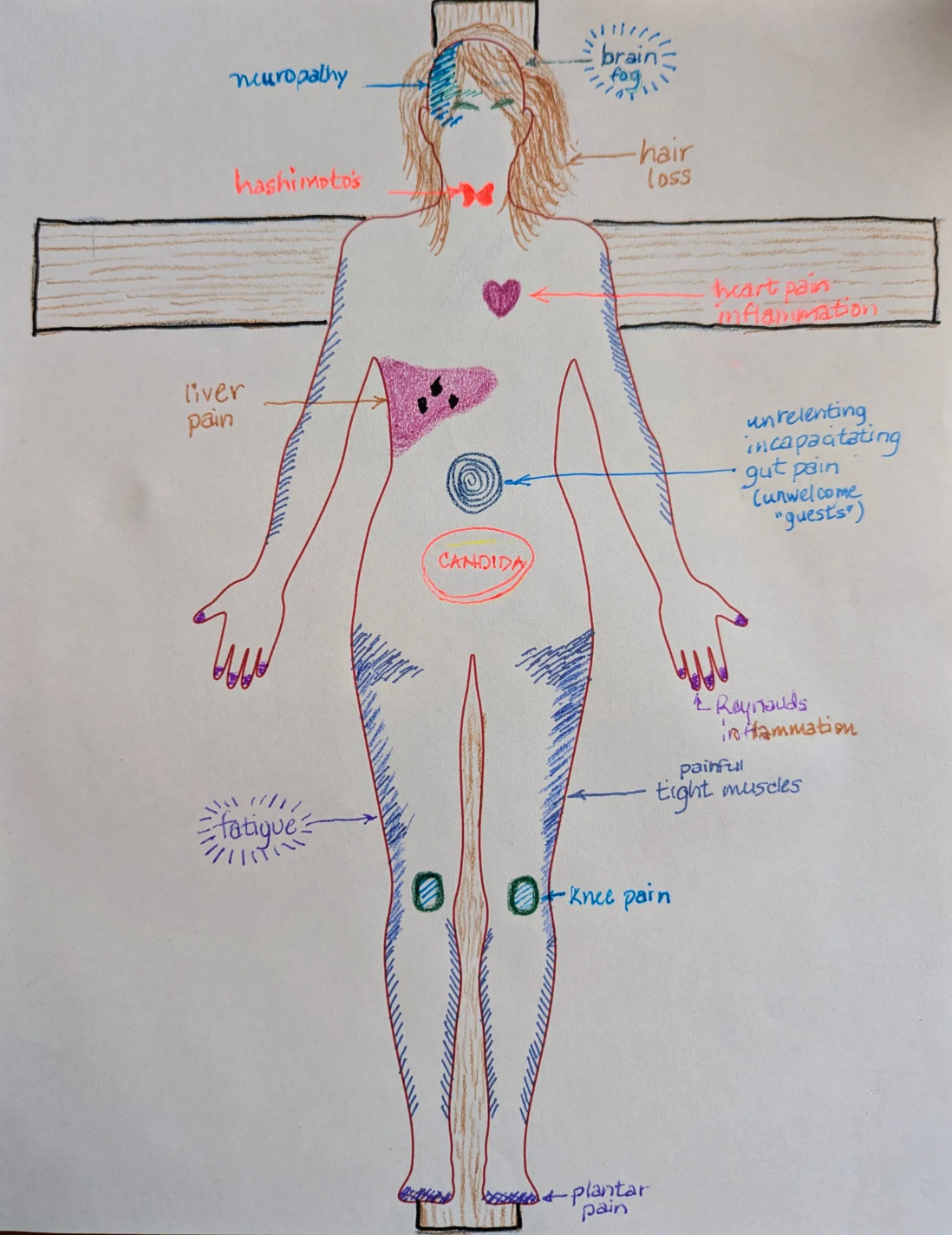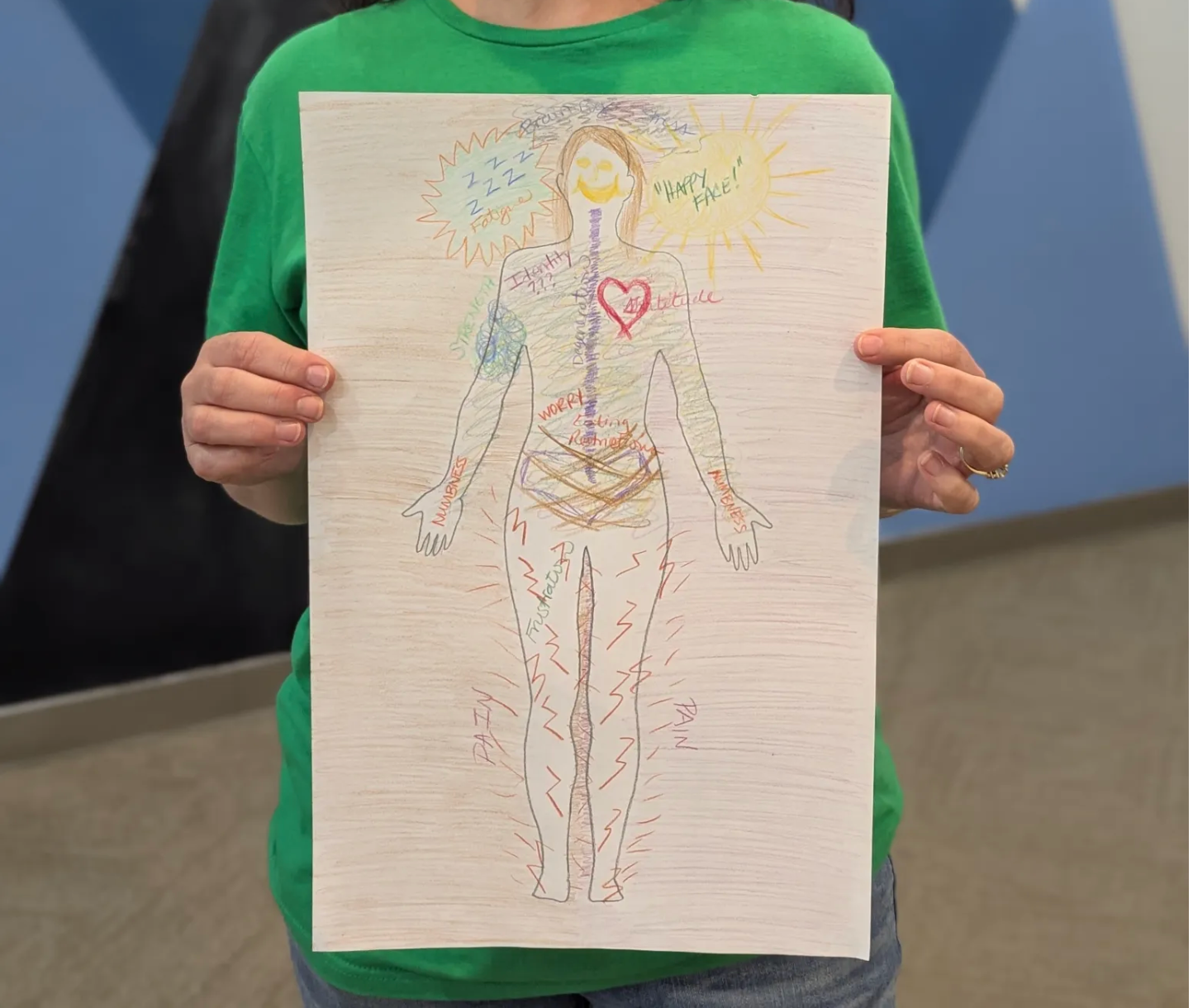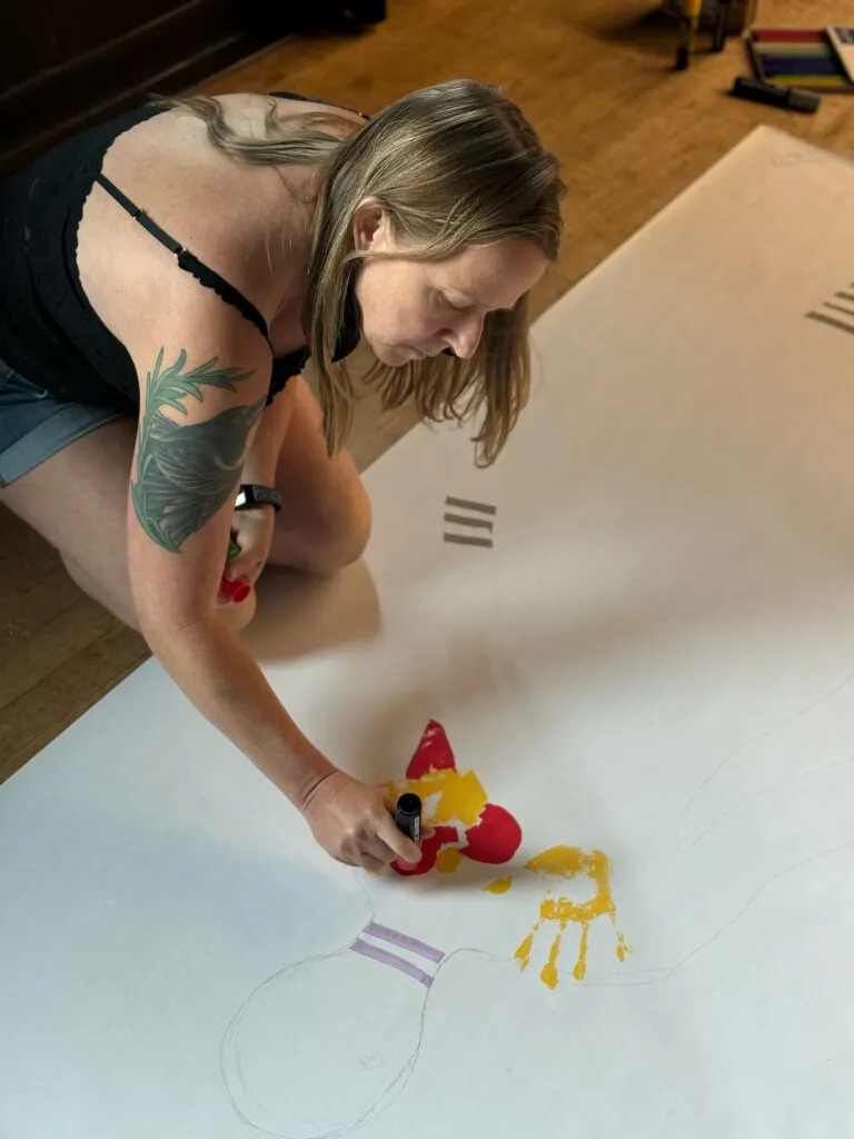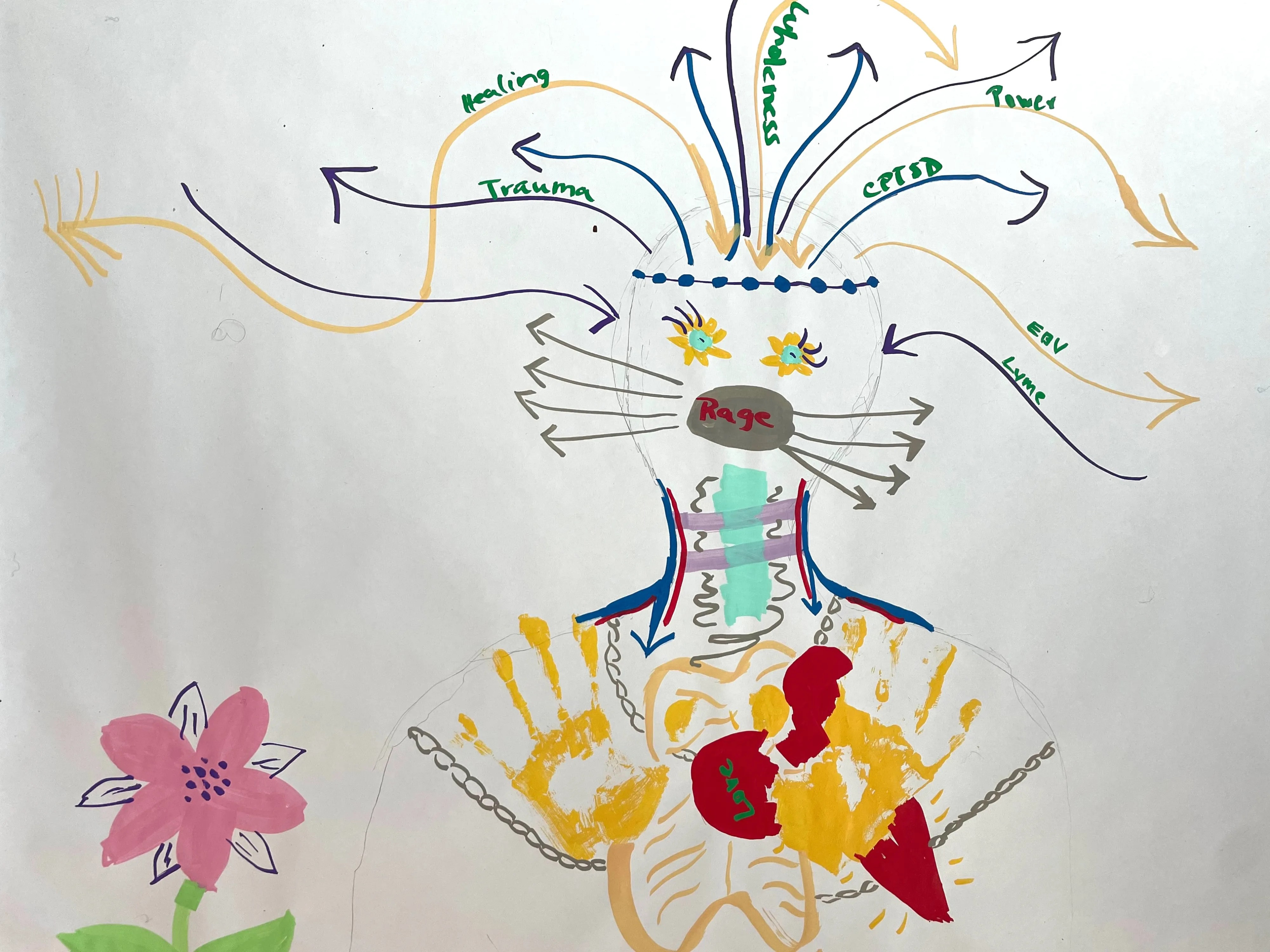 Hello, and thank you for being here. My name is Sylvia DiRosa-Taylor and I’m a high school student, Eagle Scout candidate, and Lyme warrior. For my Eagle Scout project, Mapping the Unseen, I have been leading creative workshops for people living with Lyme disease, co-infections, and other invisible illnesses. Together, we’ve been creating body maps—artworks that express how illness lives in the body, shapes our emotions, and influences our daily lives.