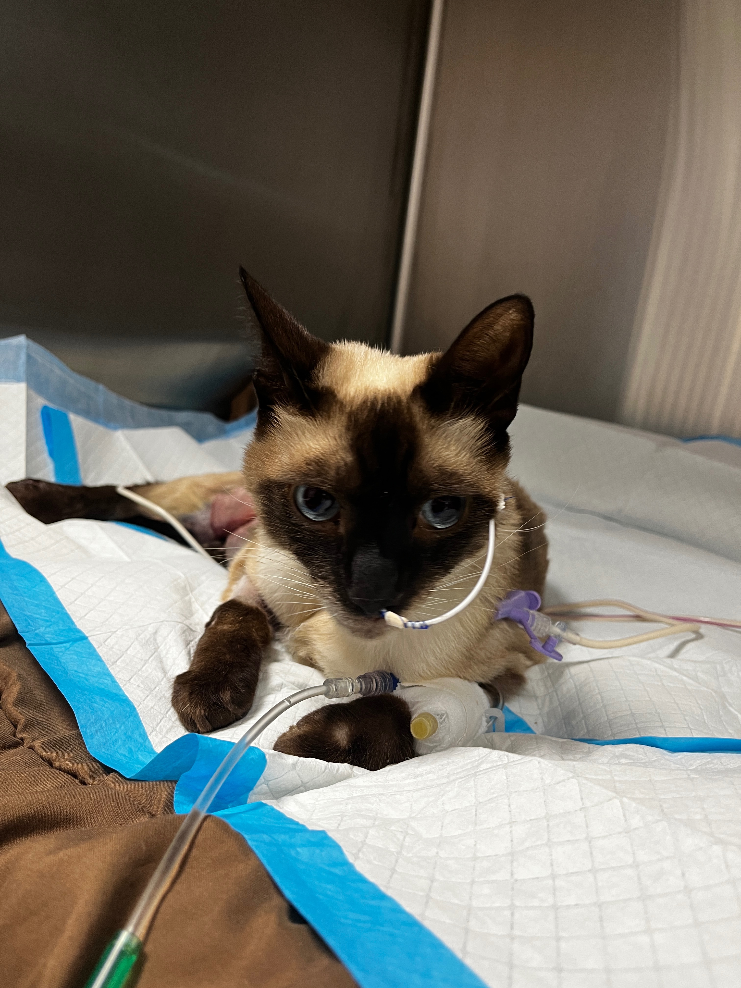 He’s currently in Sacramento with specialists who are doing everything they can to nurse him back to health. The injuries are severe. Fortunately, there doesn’t appear to be any internal damage (thank god!), but they are almost certain he will need one of his hind legs amputated. Of course, I was an emotional wreck at first—it's heartbreaking to imagine this as his future—but the vets have reassured me that he’ll live a perfectly happy and normal life once he recovers. And he’ll be the cutest three-legged cat of all time. ❤️