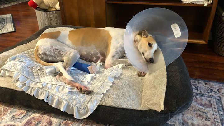 AGA'S HOUNDS AND HEROES NEEDS HELP WITH MEDICAL EXPENSES FOR A GREYHOUND FORMER SERVICE DOG - $14,000 in laser and hyperbaric treatments on Hero have brought us to ask for help. We have raised $2000 to date. Please help if you can. ANY and ALL contributions are much appreciated.