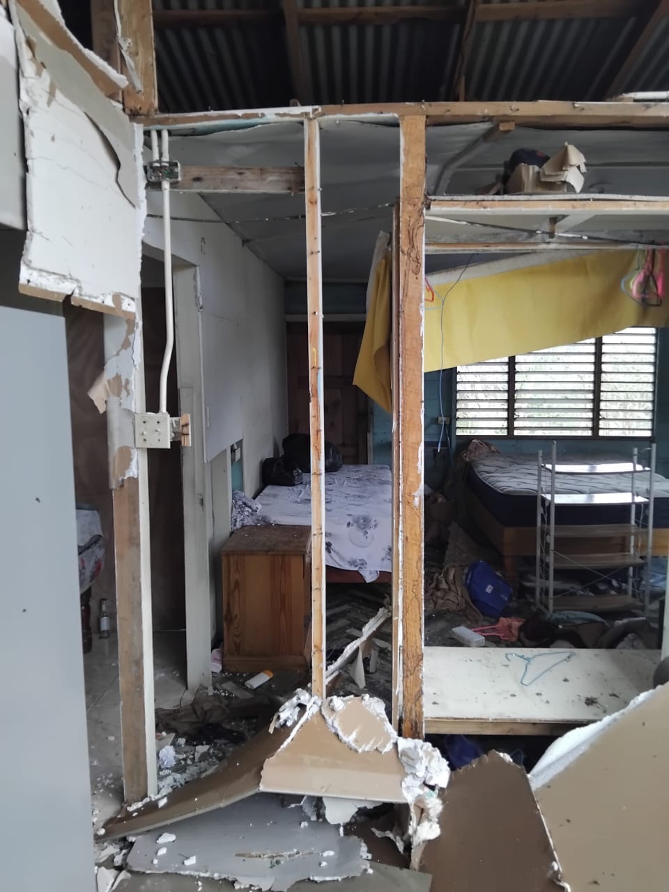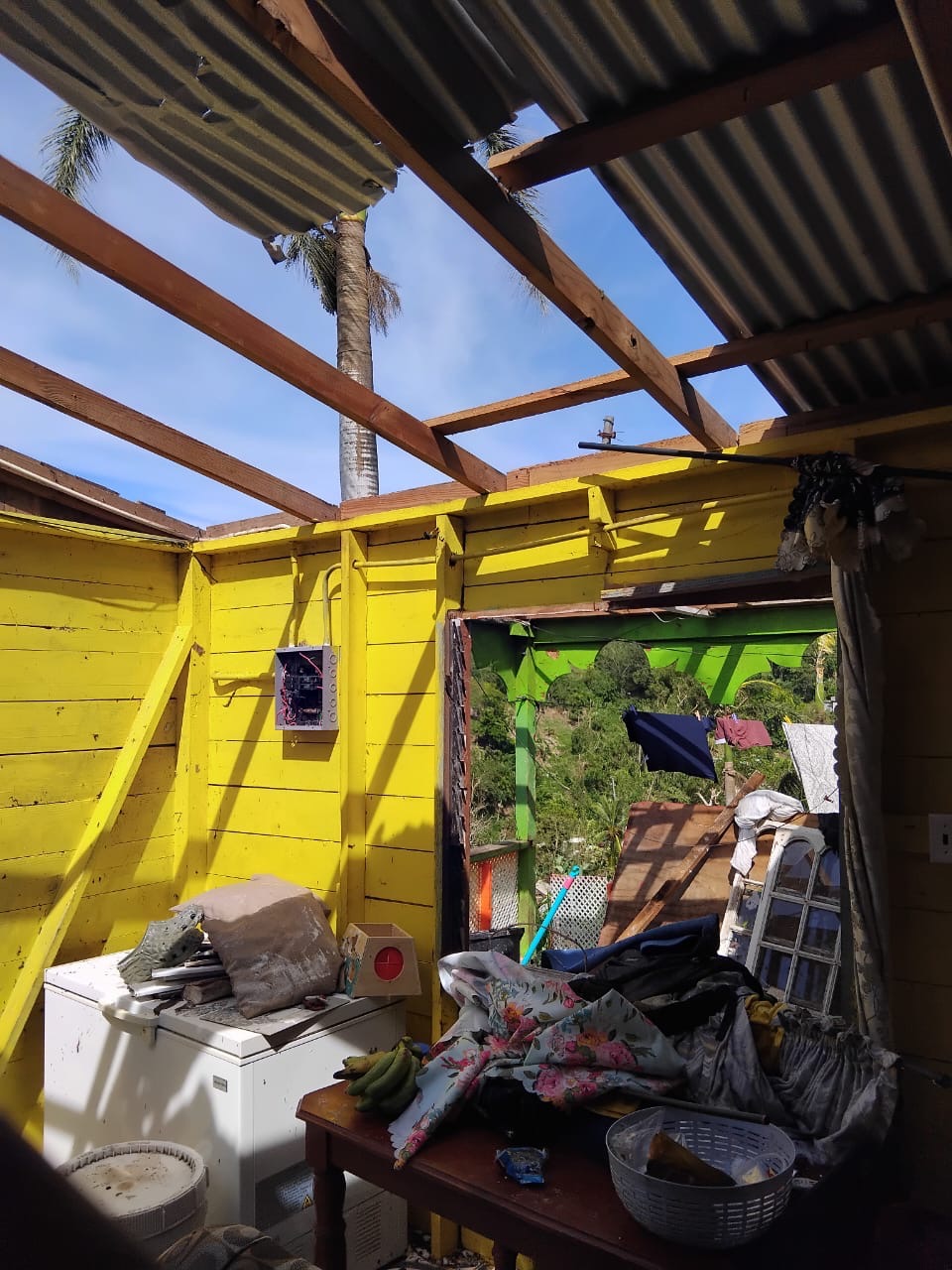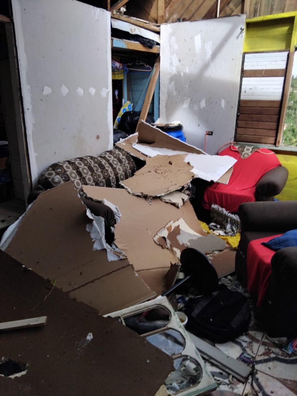 The photos we have shared is the home of our driver David. His roof came off, windows damage and his furniture and possessions were flooded with water.