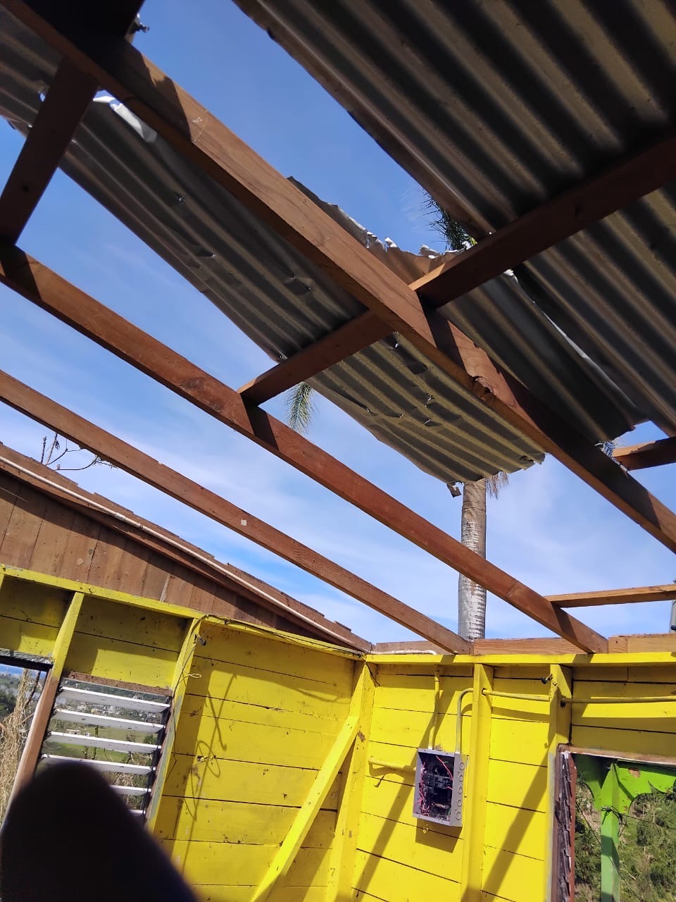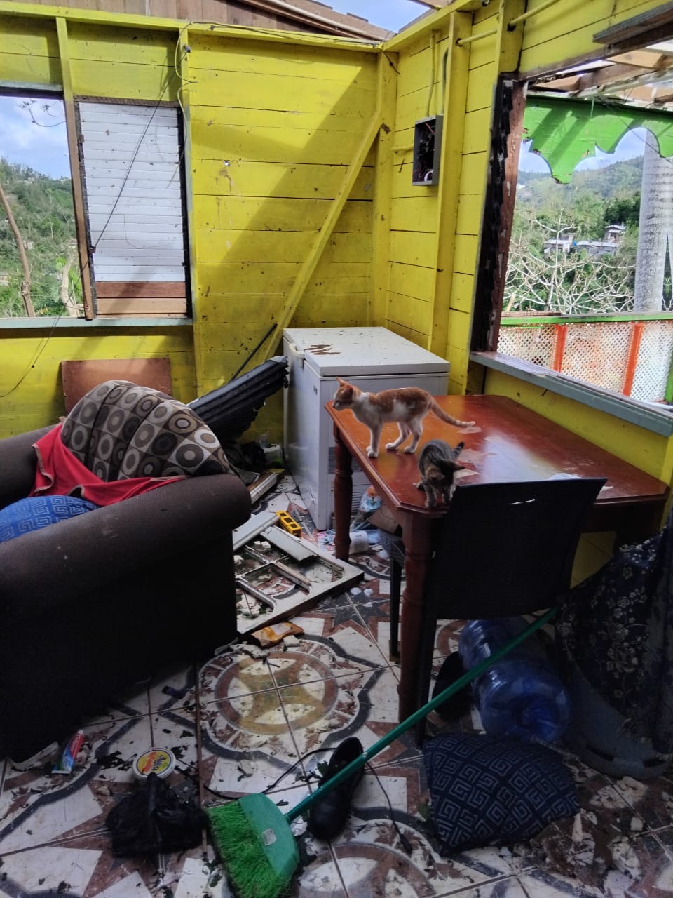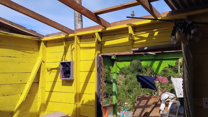 The photos we have shared is the home of our driver David. His roof came off, windows damage and his furniture and possessions were flooded with water.