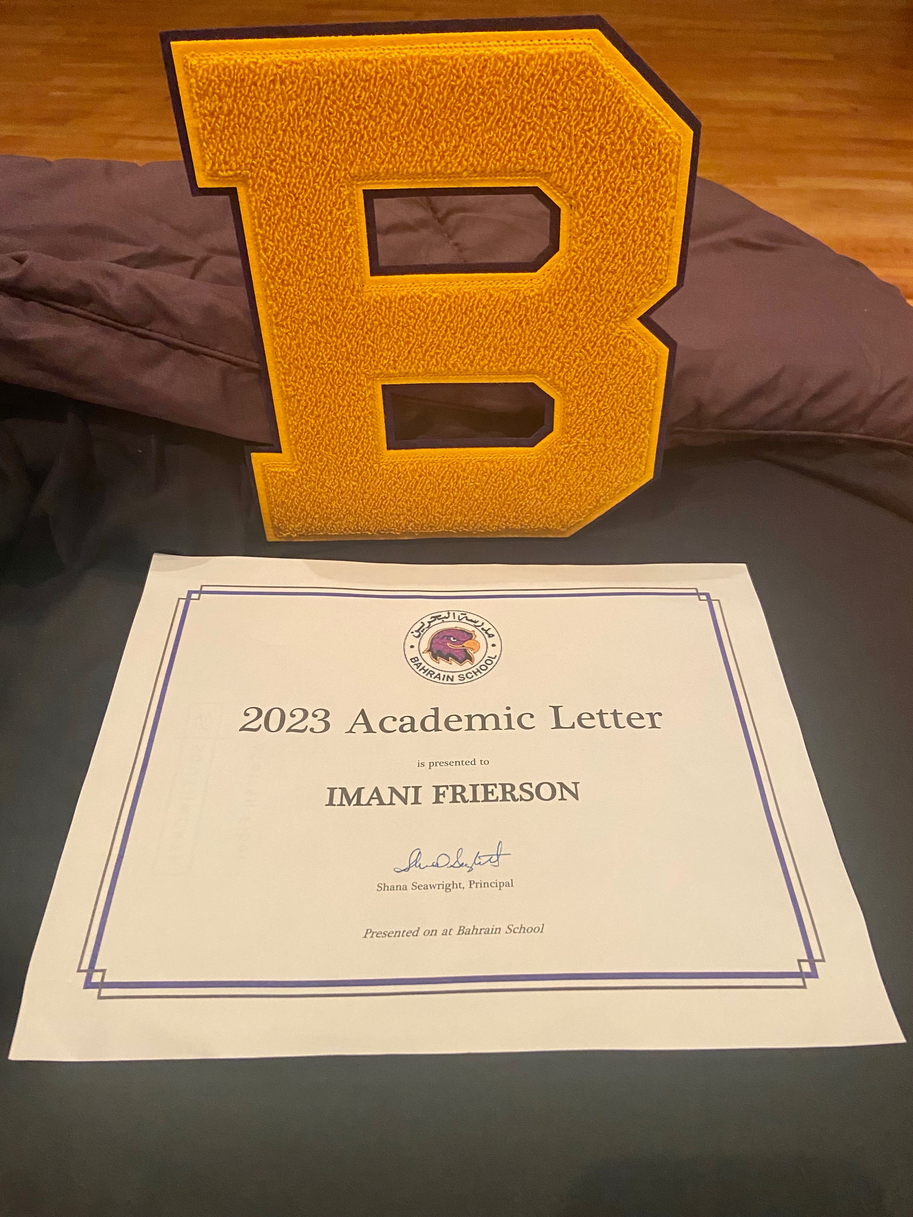 She earned an academic letter and an athletic letter, and she made history—alongside her younger sister—as one of the first American students to successfully thrive in the local host nation school system. Where previous students had struggled to stay even three months, Imani helped establish a new standard—eight years of excellence. Her perseverance broke through language barriers, bullying, and cultural hurdles, transforming foreign soil into home and paving the way for future American children to follow.