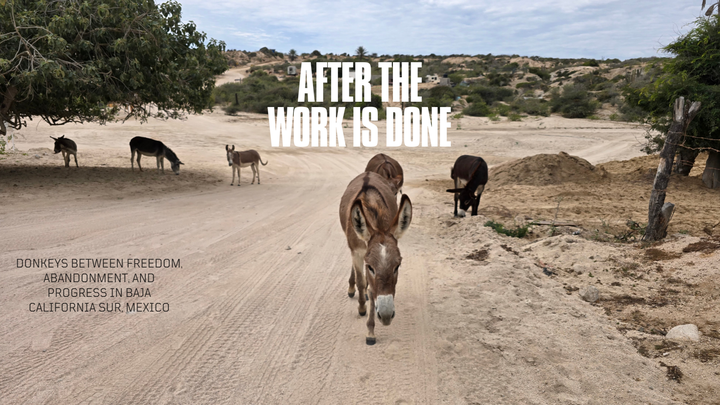 Once a vital part of rural life in Baja California Sur as essential pack and work animals, donkeys have been pushed to the margins by industrialization and left abandoned to roam. Through the voices of local farmers, sanctuaries, and researchers, the film investigates how climate pressure, illegal exploitation, and tourism are reshaping the fate of an animal many people no longer know what to do with.