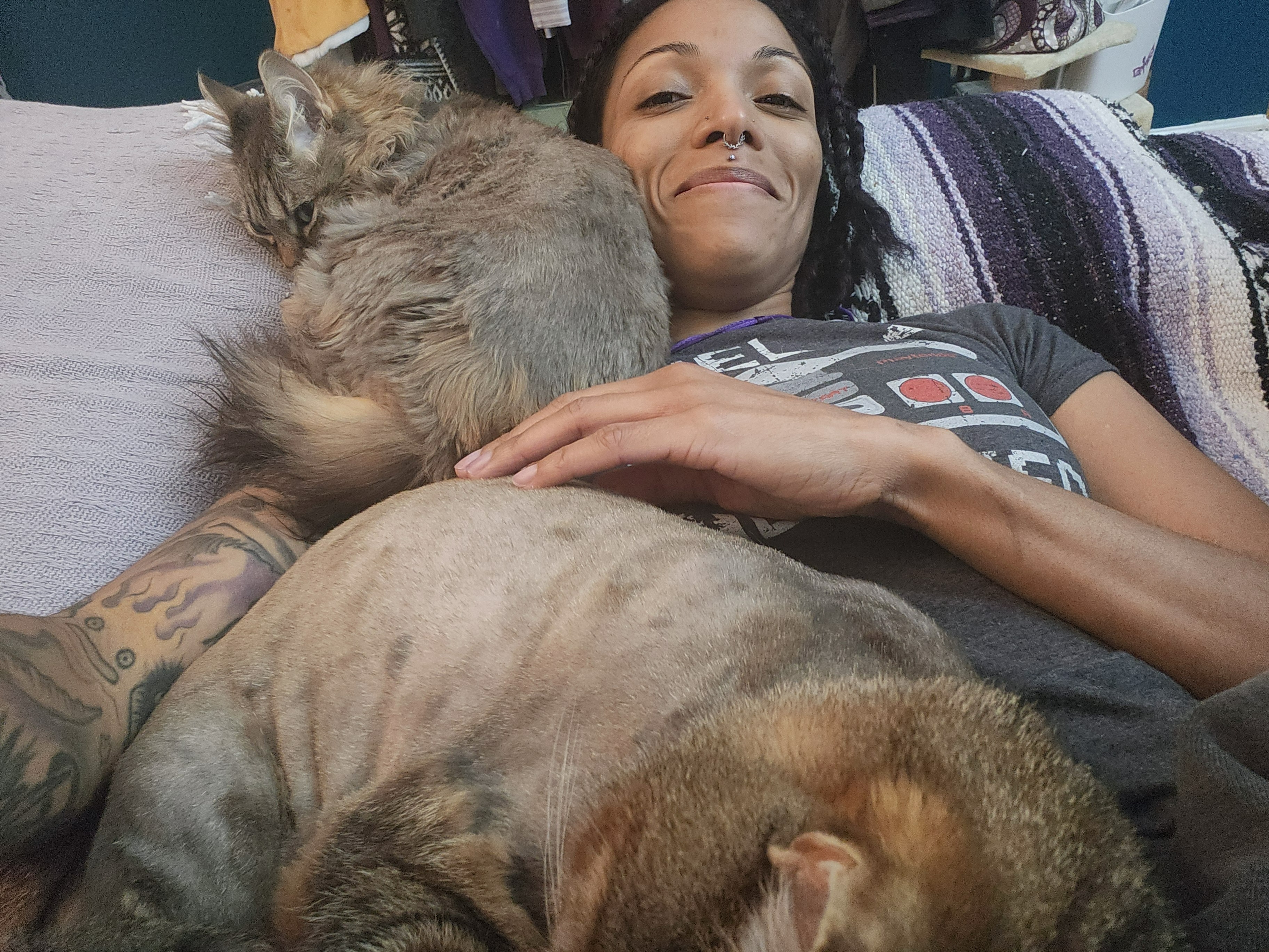 my cats are my emotional support and they are precious to me so its not often that I am seen with them not smiling.