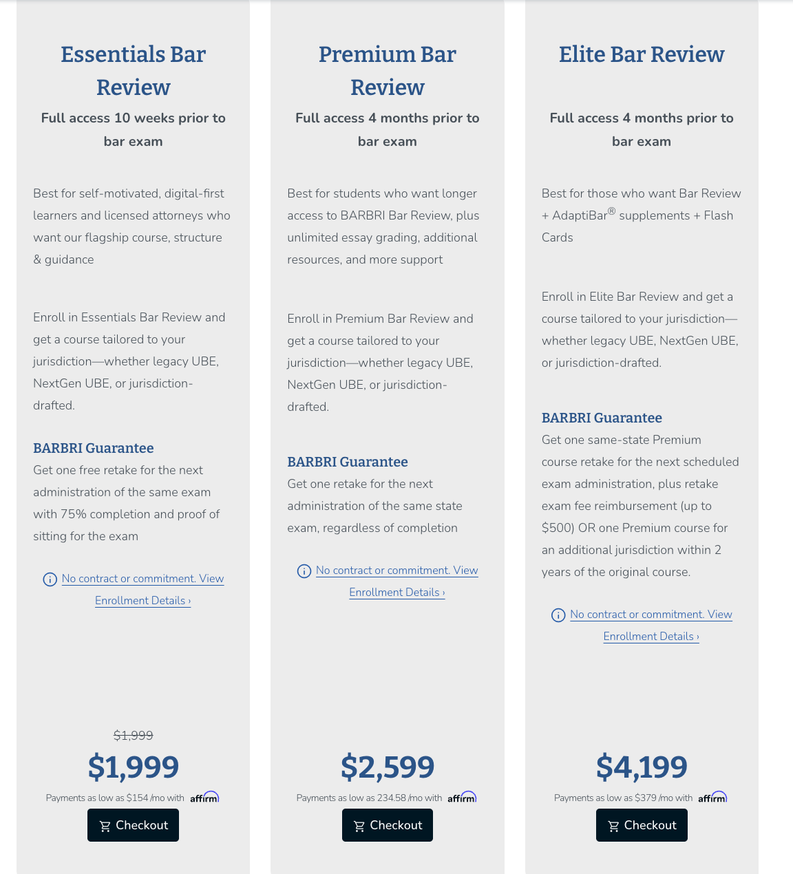 - Barbri Essentials Bar Review (Base Model): $1,999