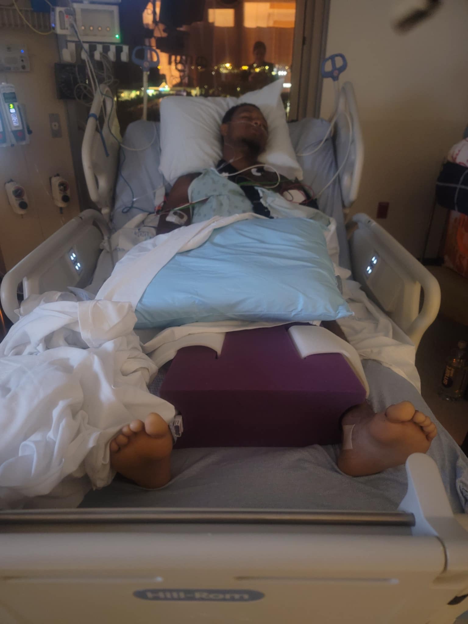 Thursday night, my 22 year old son was in an accident that left him severely injured. While riding a dirt bike, he was hit by a pick up truck that essentially made a left turn right into him. The impact of the accident resulted in a broken collar bone, shoulder blade, 3 spine fractures, several broken ribs and both hips broken. Immediately, he had a hole drilled in his knee to allow surgeons to add a weight to take the pressure off his right hip and then surgery on that hip and his pelvis. We are now expecting another surgery this week on his shoulder and collar bone. During the first surgery, he lost a good amount of blood and has been in the ICU since. Although he is improving, he is bed bound and will be for the foreseeable future while he is healing.