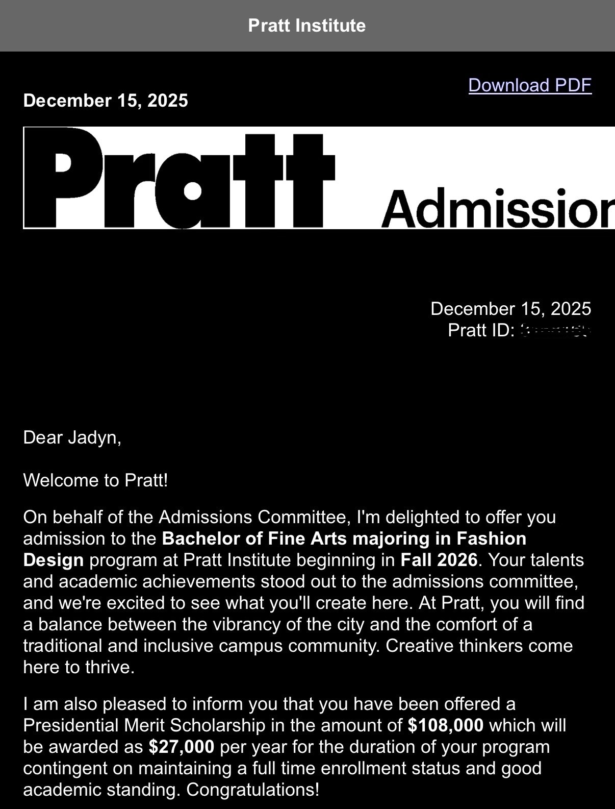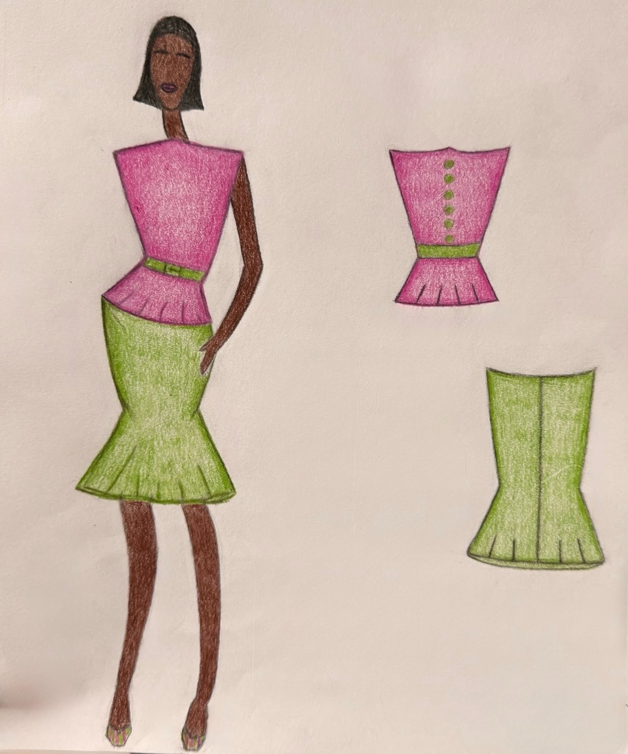 My name is Jadyn Patterson, and I am a high school senior. I have always been interested in fashion, starting in middle school and putting elaborate outfits together, but shifted toward an interest and eventually a passion for fashion design in freshman year of high school. I have put hours of work into being accepted into fashion school, and am grateful to have been accepted to Parsons, Pratt Institute, and SAIC among others.