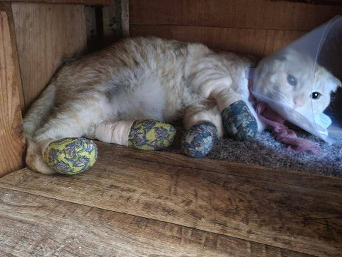 Jai and Alex have had one kitty return home, his paw pads are burned off, dehydrated and exhausted.