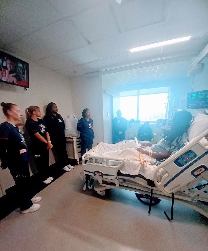 Jalen needed two surgeries to repair his spine/spinal cord and pelvis. Jalen spent 11 days in the ICU, where he was cared for successfully by the staff of Grady Hospital. Jalen was determined to get better and retain his strength. The staff noticed his determination and decided to send him to rehab, where he stayed for over a month. Jalen, with his infectious smile and personality, made a beautiful mark on the staff and was chosen to speak and encourage the student nurses from a patient standpoint.