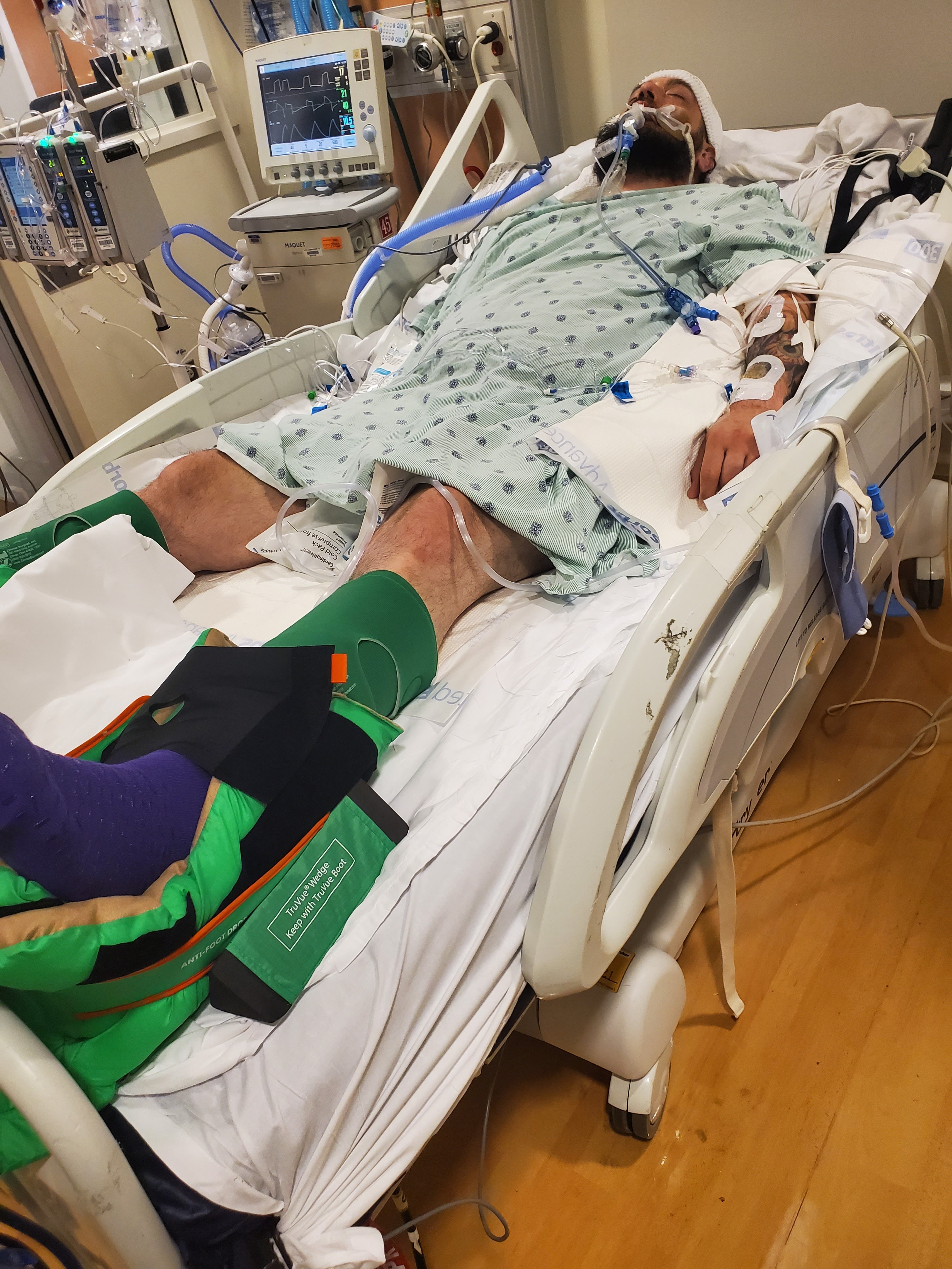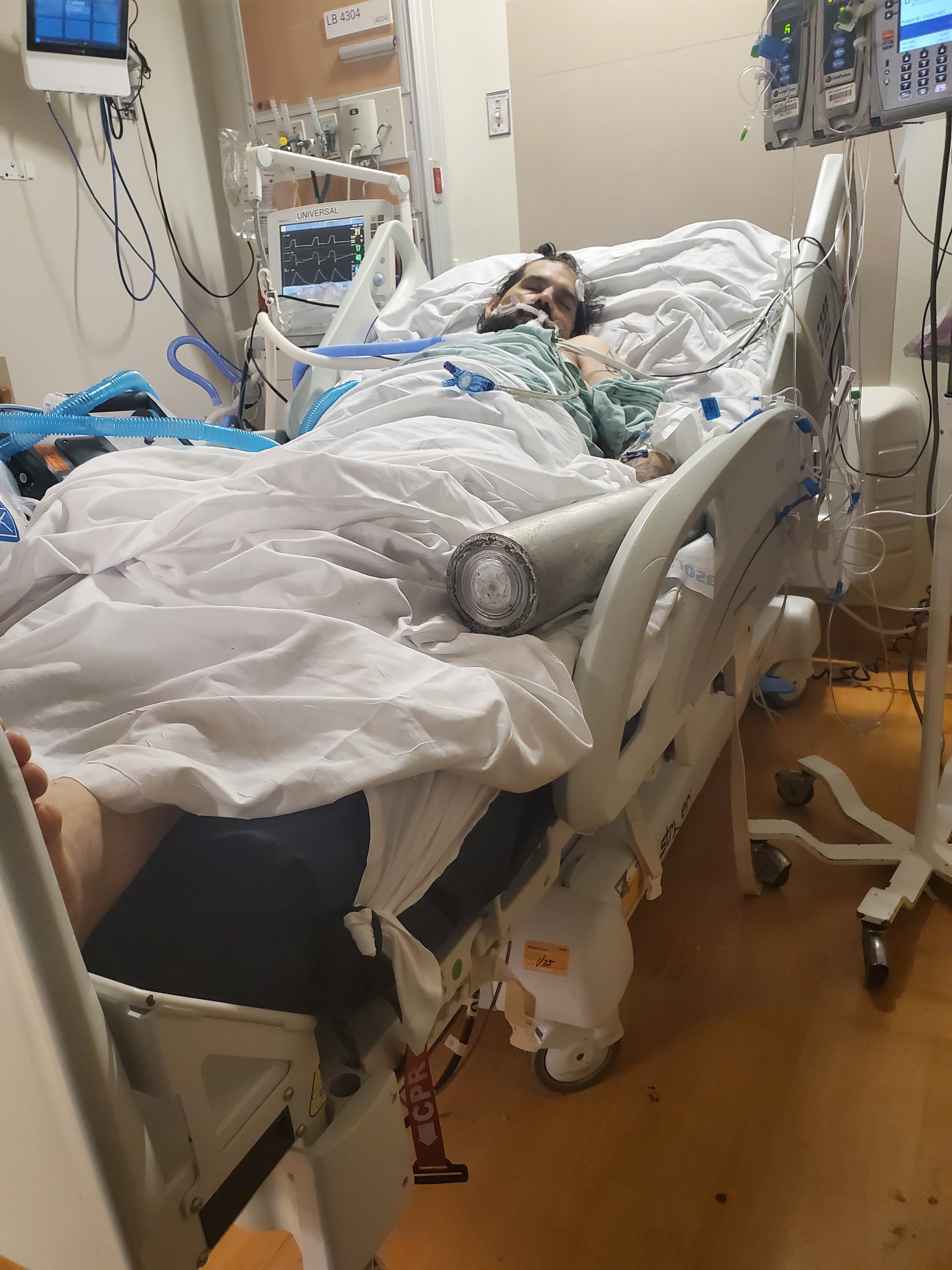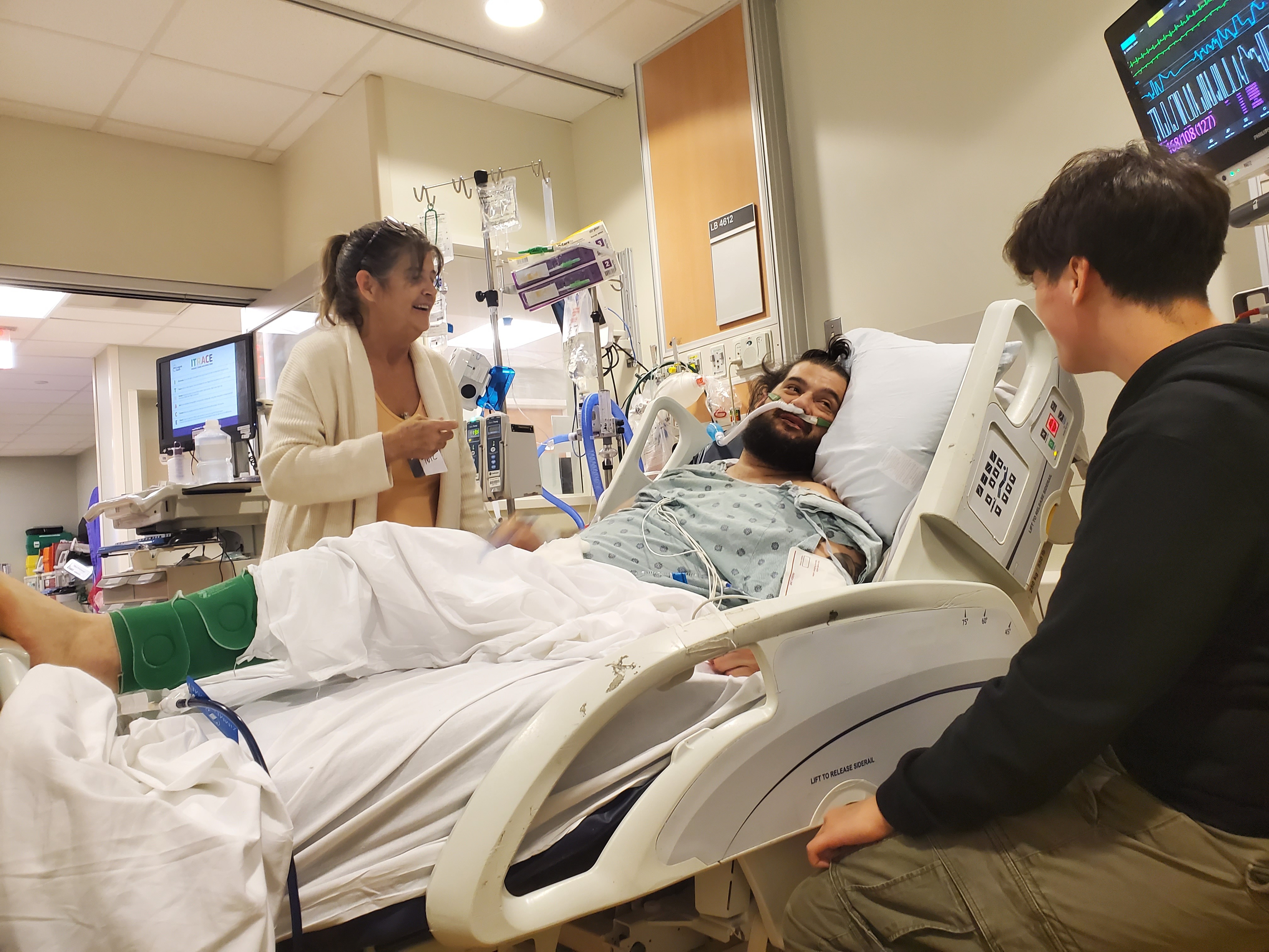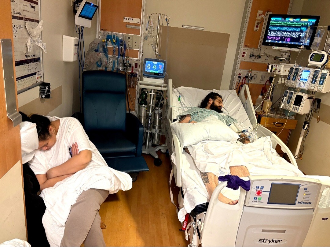 After a day of being awake, Jason mentioned his left shoulder was hurting. An initial X-ray didn’t show anything, but before we left the hospital, another X-ray and an MRI were done, which revealed a brachial plexus injury. During his hospital stay, he also began to experience signs of hospital delirium. On the morning of September 29th, I noticed Jason wasn’t breathing and was experiencing hallucinations. The doctors and nurses tried giving him oxygen, but his levels kept dropping. He was rushed back to the ICU and re-intubated. The hospital reported that his pneumonia had reactivated. On October 9th, the doctors were able to extubate him again, but ENT and SLP said his vocal cord still isn’t moving, and he needs intensive therapy. Jason is on NPO, and after over a week, doctors performed a PEG procedure. He finally got to go home five weeks later, but he still needs a lot of therapy (OT, PT, SLP), doctor follow-ups, and is unable to work.