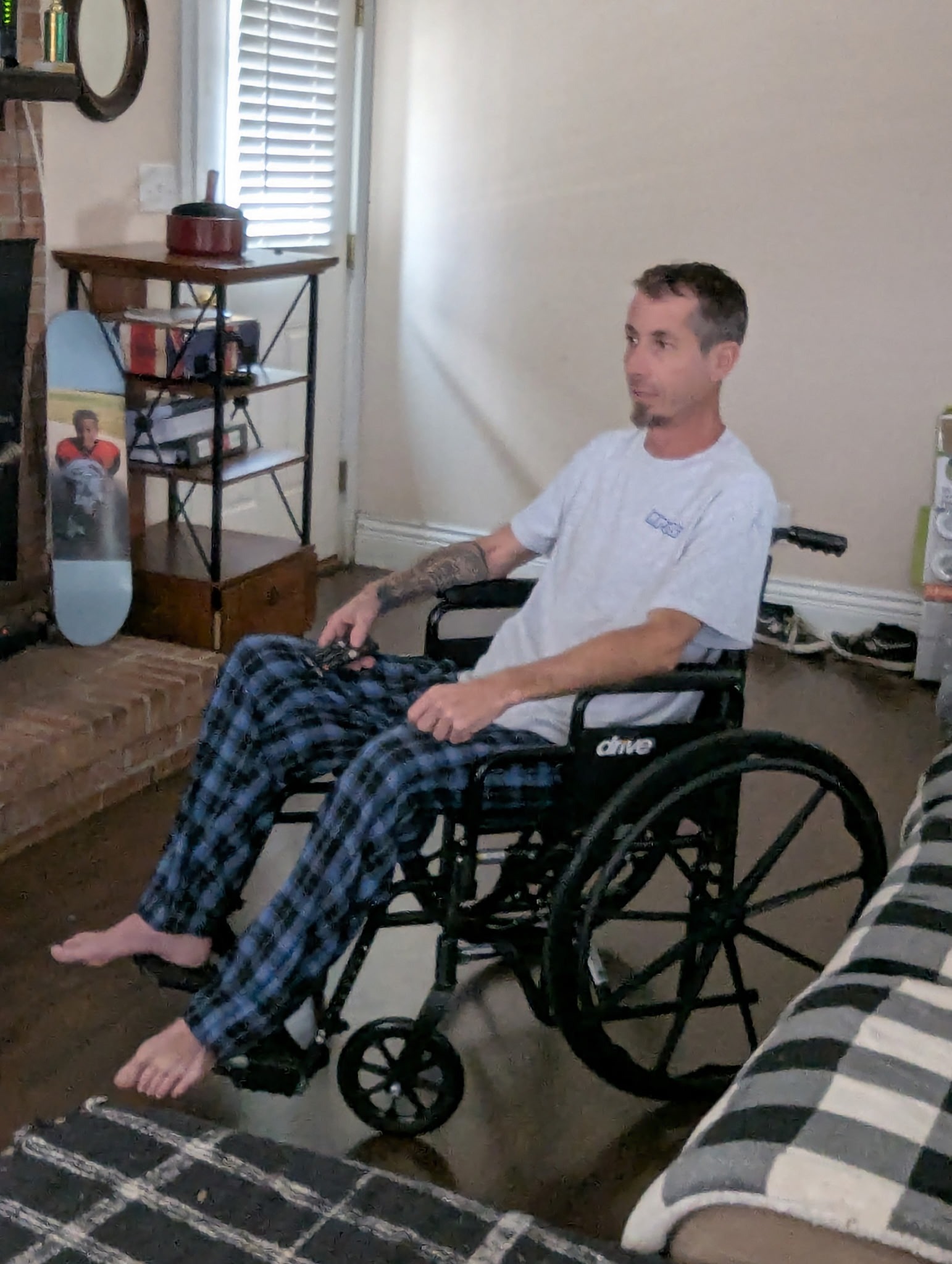 He'll need to wear it for at least four months before undergoing a second major surgery to reverse it. In the meantime, his body is still dealing with chronic pain, nerve damage, and limited mobility - all while adjusting to the demands of ostomy care and fighting daily to gain strength.