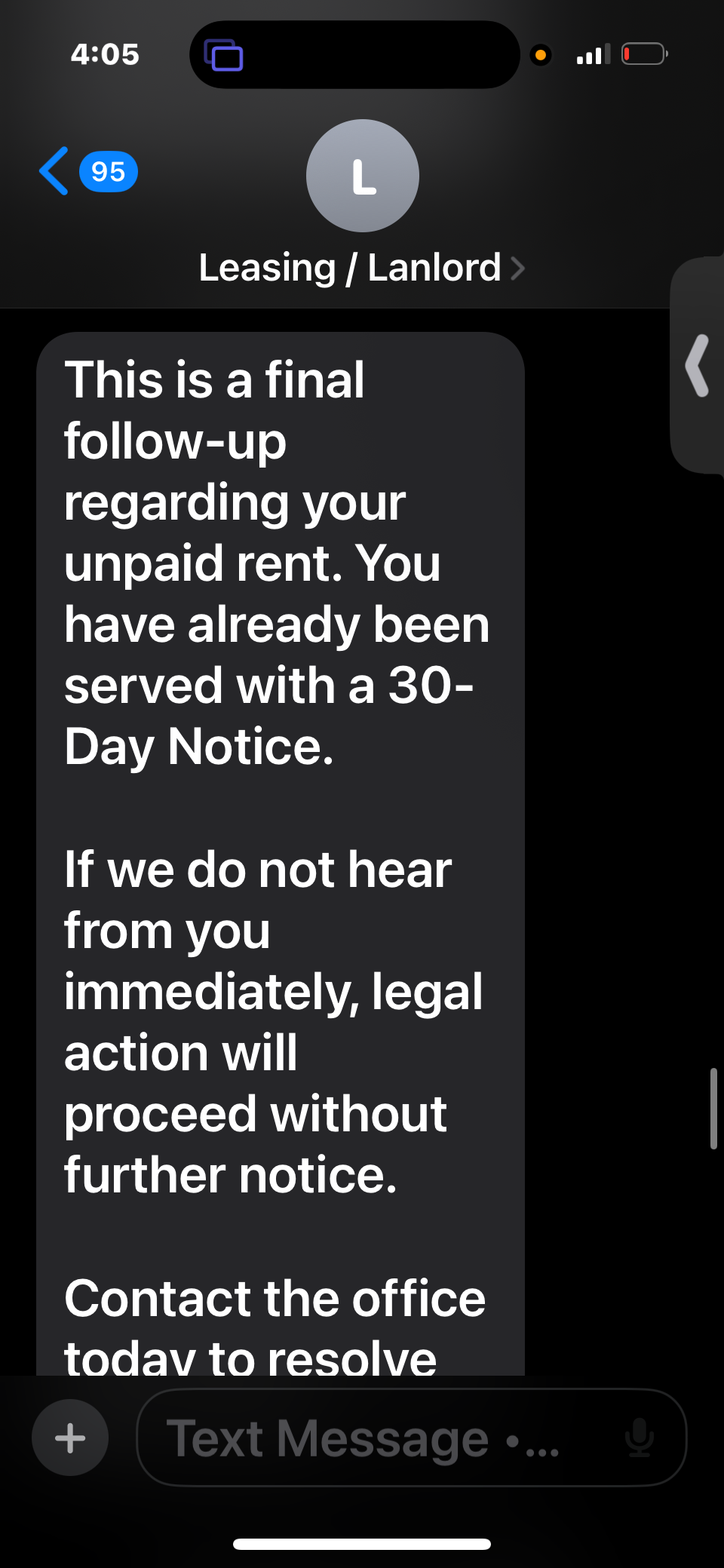 My leasing agent has already sent out the eviction paperwork and told me that the eviction notice can be placed on my door any day now. I’m currently $2,700 behind on rent and living with the constant fear and stress of losing my home at any moment.