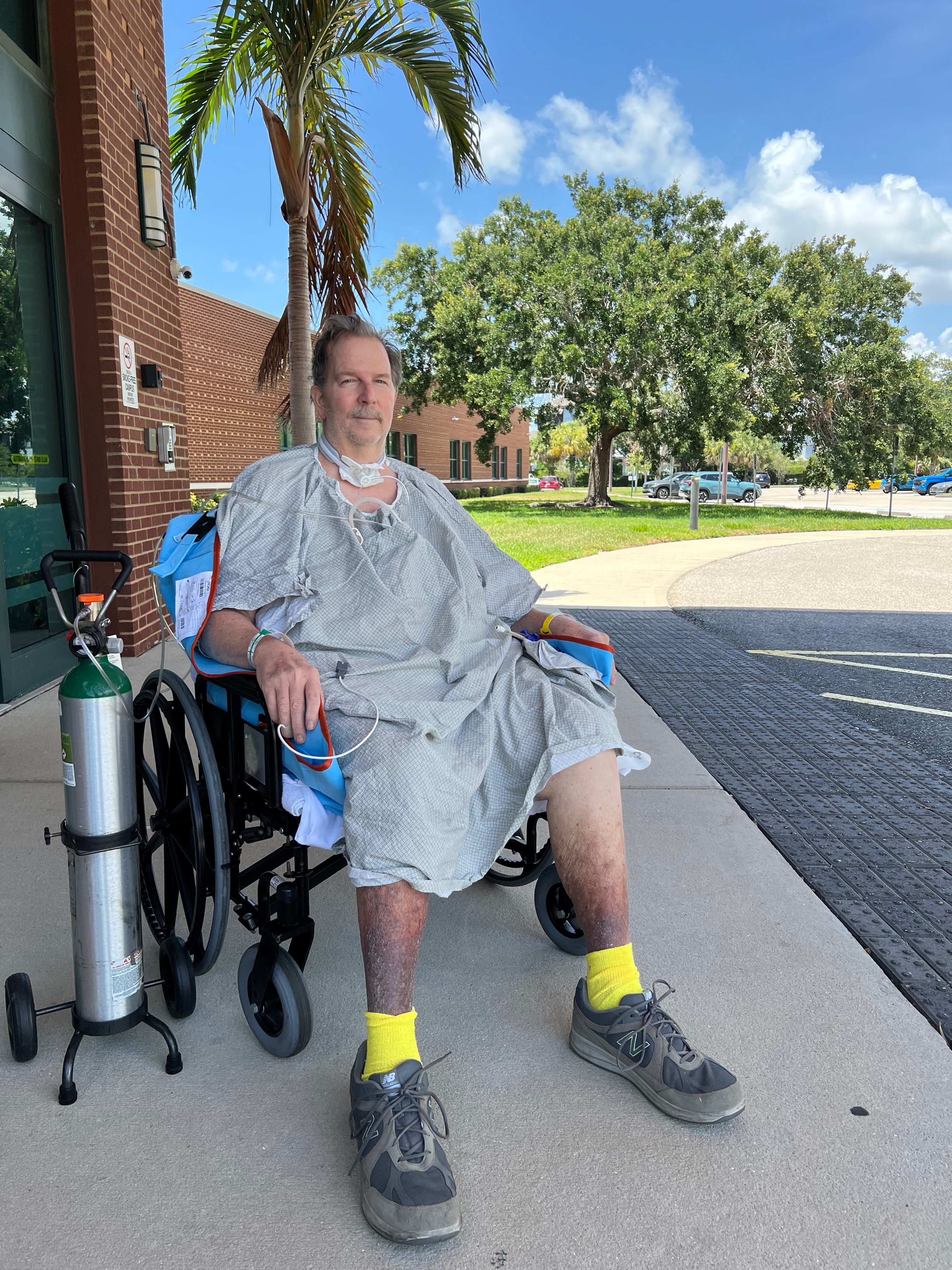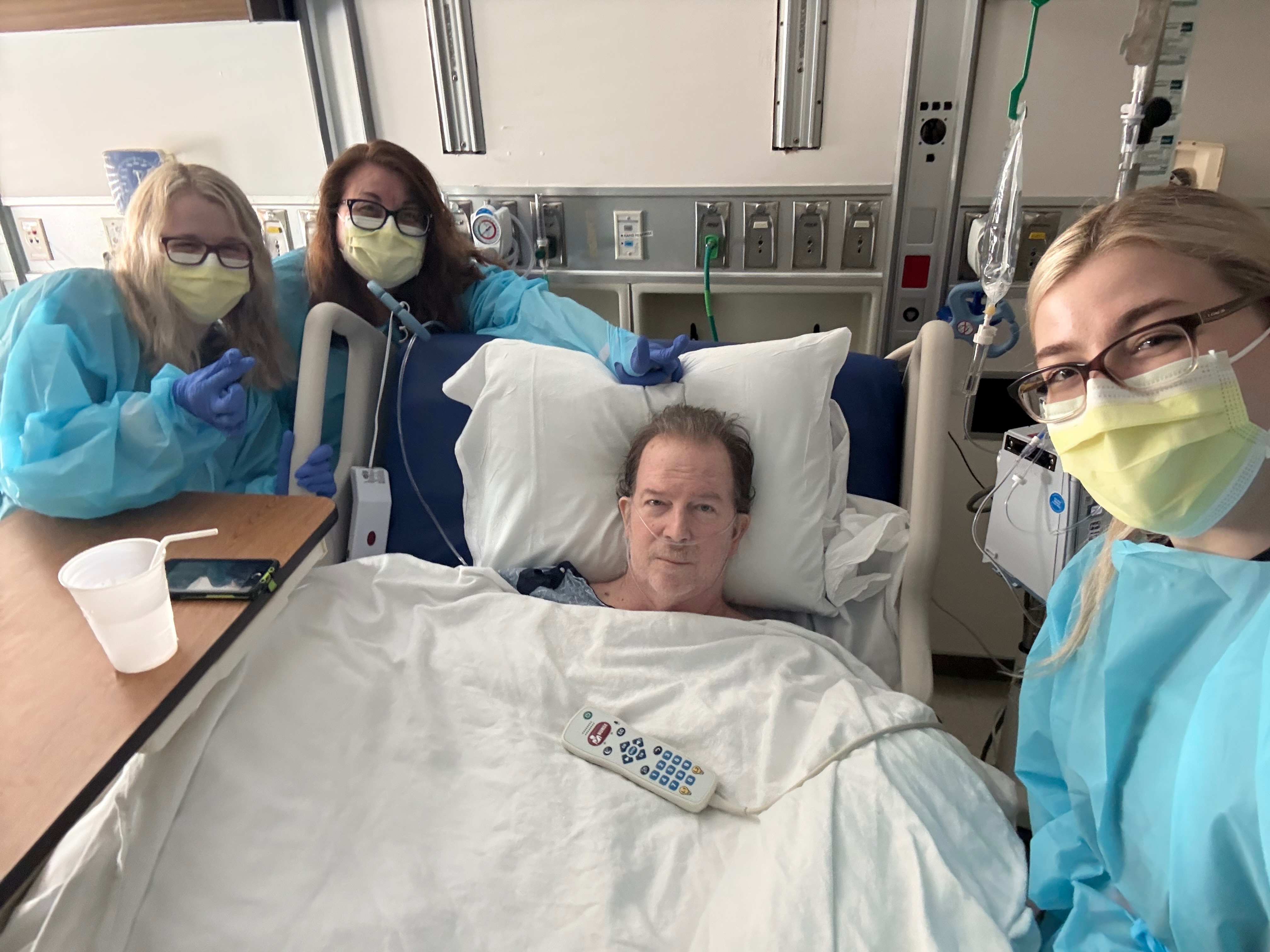 After 4 months at this new hospital, he was intubated twice more. His CO2 retention was too high for a nasal cannula or even a BiPAP machine to bring down. The CO2 retention brought on confusion, hallucinations, and made him very lethargic so when we would visit him, he had a hard time staying awake, let alone being able to do any more physical therapy. In his time at that hospital, he underwent a tracheotomy in order to stabilize. After a month with the trach, the hospital removed it. He was then sent to a skilled nursing facility and after only 10 days there, had to be re-hospitalized and intubated 3 more times after that. At the hospital, he was diagnosed with Obesity Hypoventilation Syndrome (OHS). He has been bedridden for 7 months now and lost over 120 pounds. He is now back at the skilled nursing facility and has been making progress these past couple weeks. We are hoping everything is up from here.