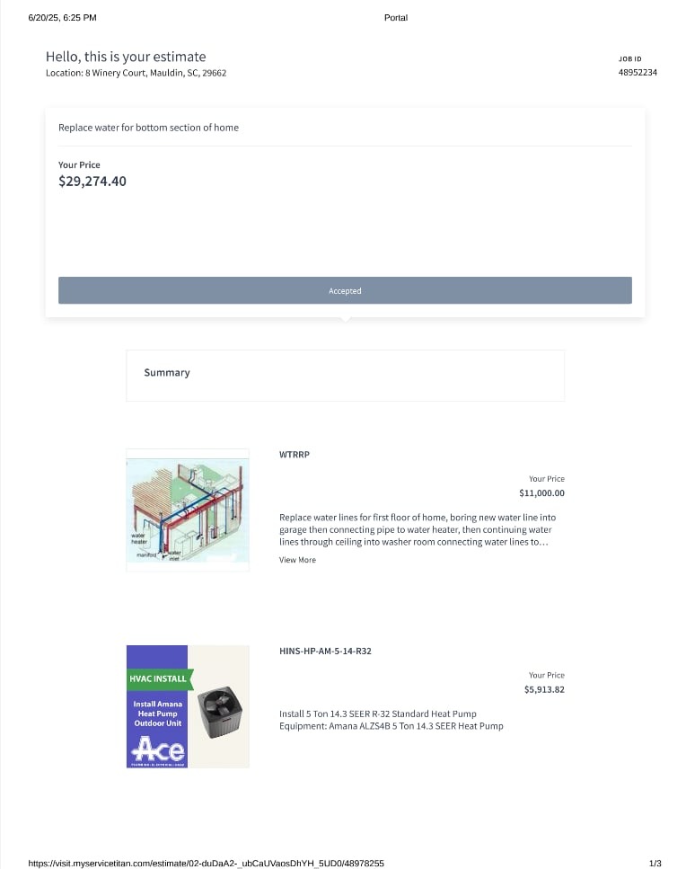 To make matters more difficult, in October we experienced a major water leak under our slab foundation, and our heat pump system completely failed. We tried to manage by turning the water off and on as needed, but with Jeff's surgery approaching and our South Carolina summer heat, we couldn’t wait any longer. We had to replace both the plumbing and HVAC system at a cost of $29,274.40—wiping out the savings we had left for Jeff’s recovery and medication.