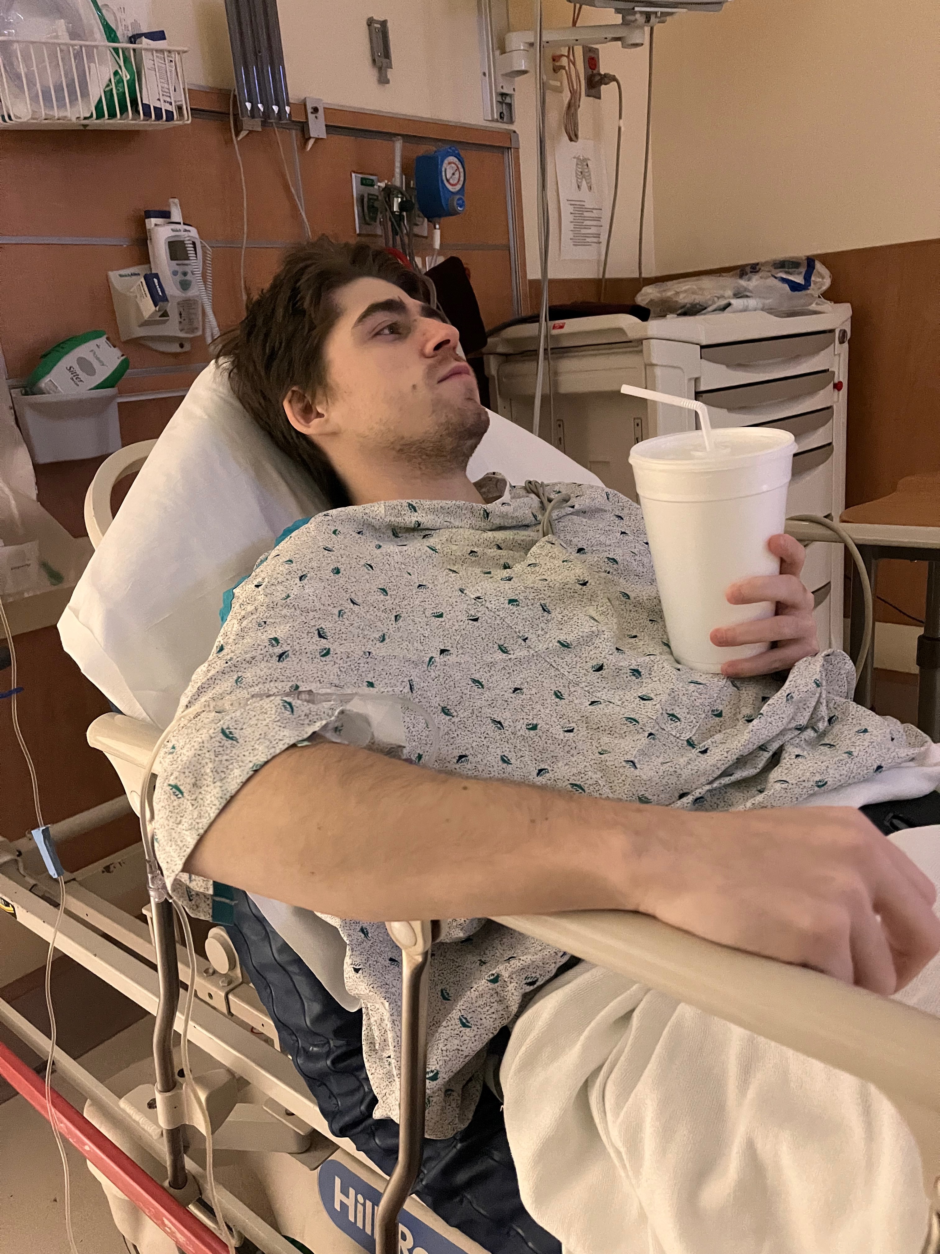 Jeremy, my boyfriend, has been battling Crohn's disease for years, but this past week has been one of the hardest yet. A sudden and severe flare-up landed him in the hospital, where doctors discovered a partial obstruction. To help, they placed an NG tube, which made it impossible for Jeremy to eat, drink water, or get proper rest. Even though the tube was recently removed, he was able to drink a little bit of water until they took another x-ray and it showed that the obstruction is getting worse. He no longer can eat or drink, and the uncertainty of his recovery has been overwhelming for both of us.
