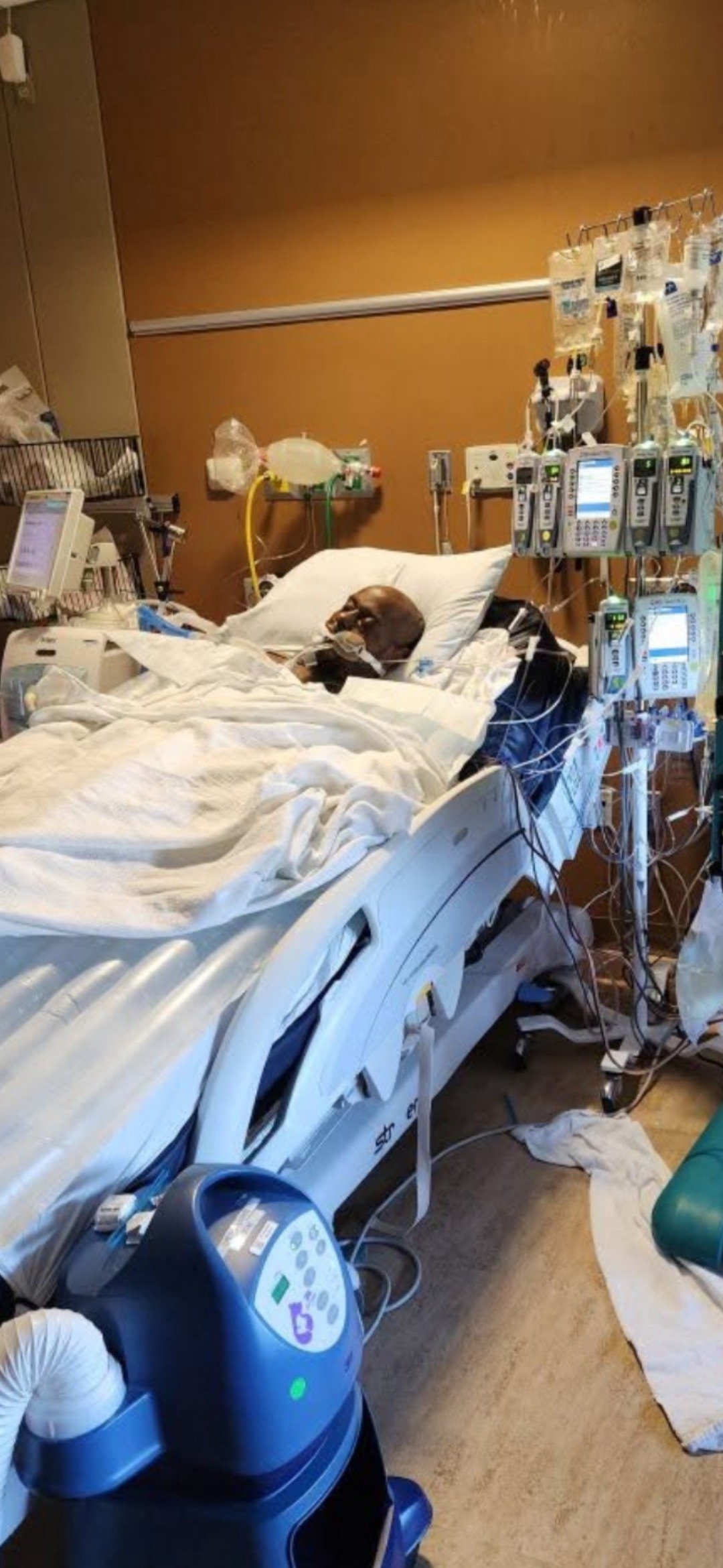 On April 22, 2025, Jermaine was bathing at home when an artery in the failed fistula ruptured, causing him to nearly bleed out before getting help at the hospital. That artery ruptured a total of three times, necessitating a transfer to another local hospital with a trauma unit. While trying to staunch the bleeding, a tourniquet was left in place too long by staff, causing his right arm and hand to deteriorate due to no blood flow.