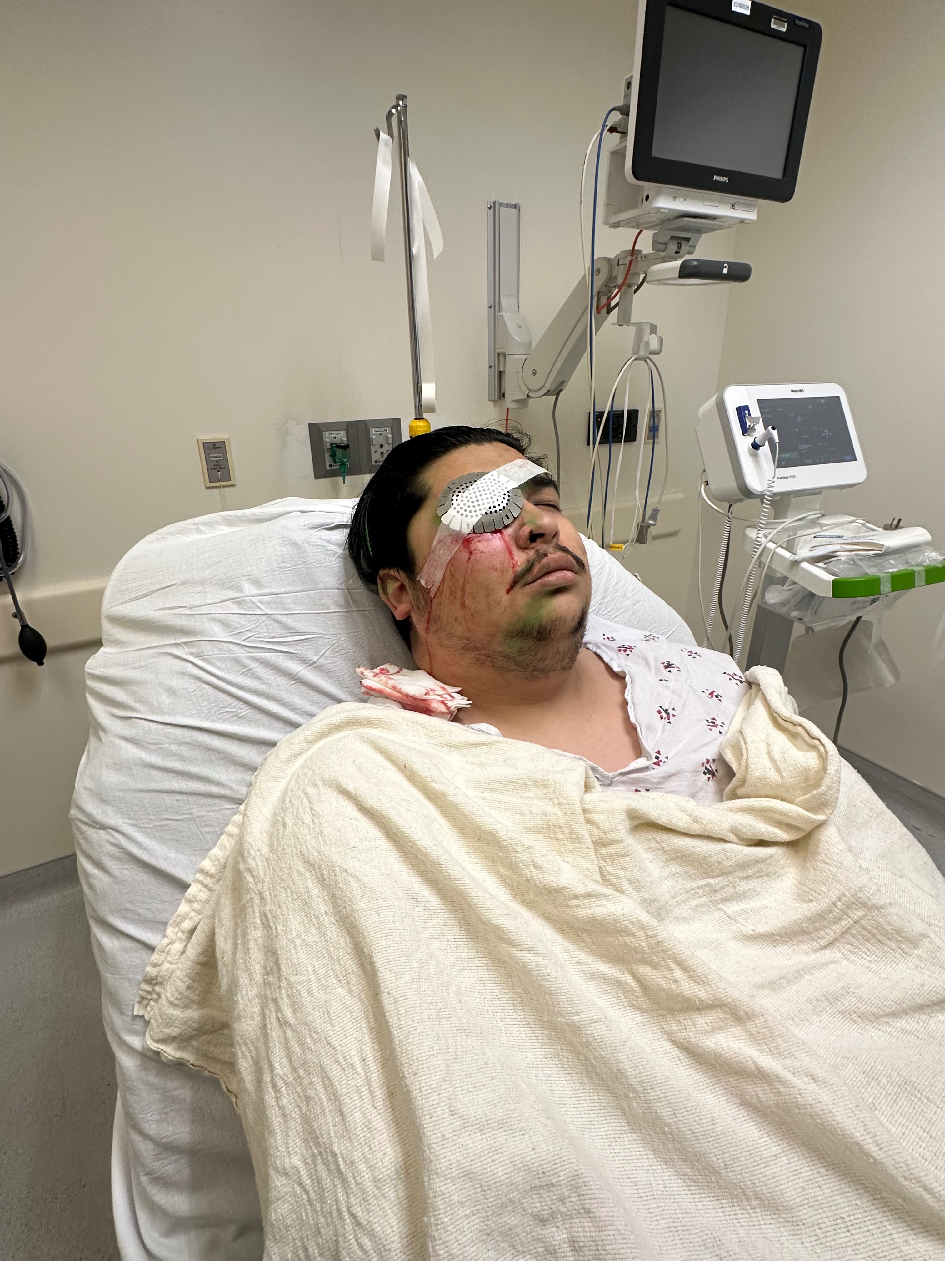 Jesus,22, was shot directly in his right eye with a pepper-ball by LAPD. He was on his way home from work when he stopped by to say hi to a friend who was observing what was going on during the LA ICE protest. Jesus was not taking part in the protest and was observing from afar when he was directly hit.