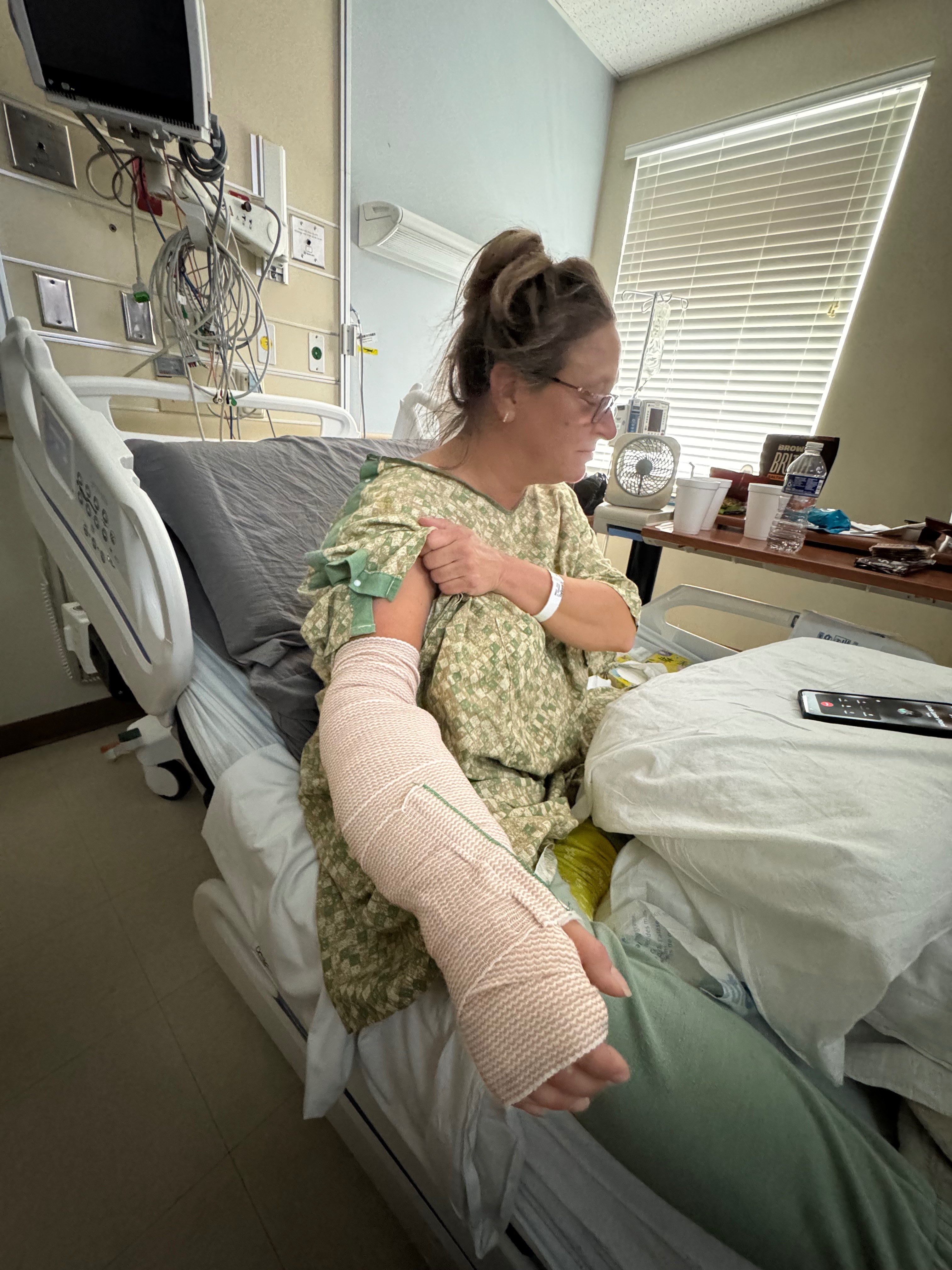 My friend Jill Mroz was attacked by a large dog while working for food delivery service. She sustained multiple injuries to her arm and chest. She was taken by ambulance to the closest trauma hospital where she underwent next-day surgery for a tendon repair and wound closure. She is expected to have a minimum three-day stay at the hospital.