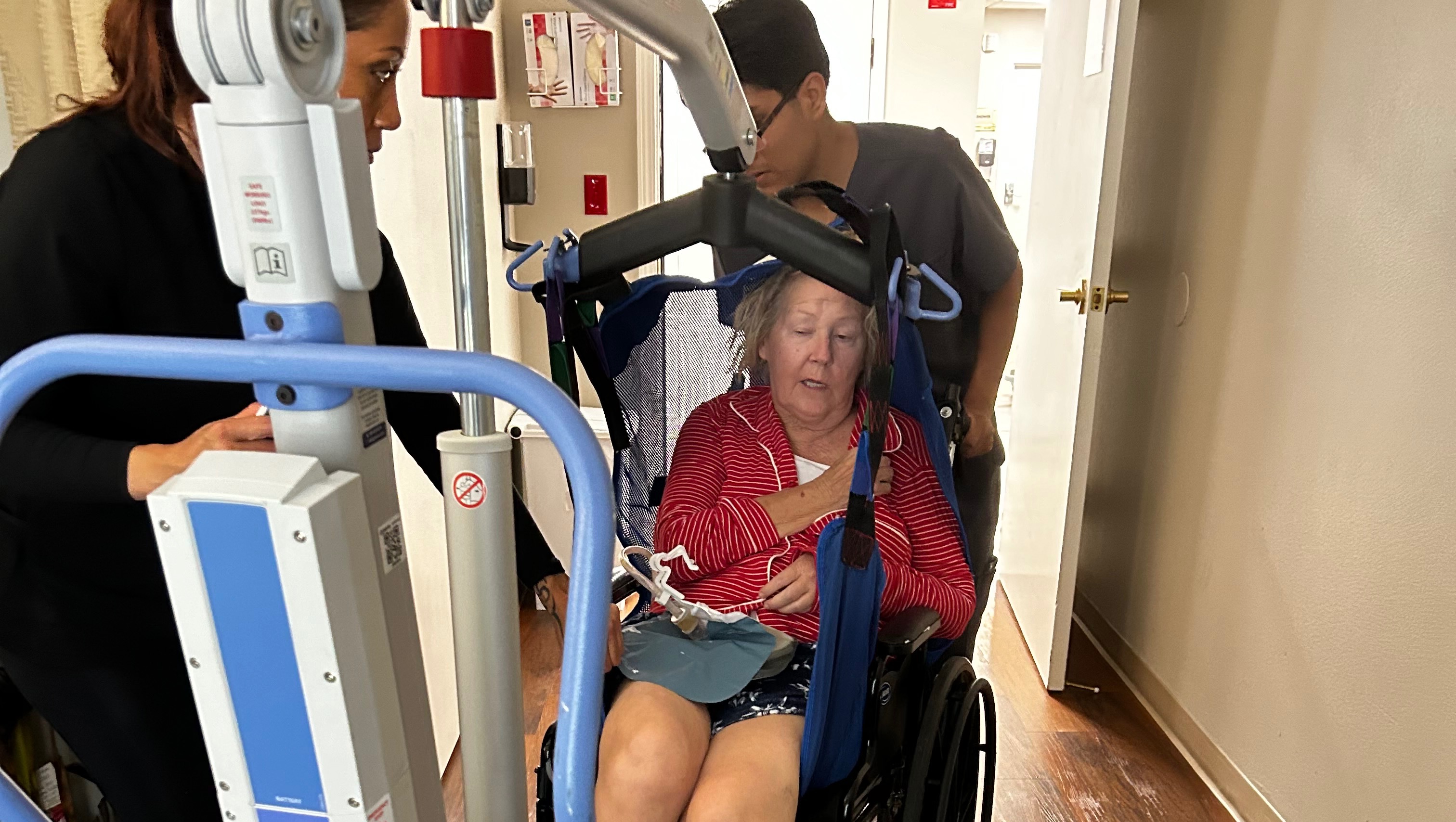 While traveling home on April 28th, Grammy had a layover in Las Vegas, NV. Upon landing, she immediately noticed an intense headache along with nausea. She got off the plane and was rushing to try and make her connection when she lost full mobility on her left side. At this point, EMS was called and she was rushed to the hospital where she was immediately put on life support - she had suffered a severe brain bleed in the right frontal lobe that has left her paralyzed on the left side of her body. This is medically known as a Hemorrhagic Stroke. After lots of hard work and determination, we were thrilled that the team of doctors were able to extubate her and she eventually began to breathe on her own. It was 2.5 weeks later that she was transported by ambulance from Nevada back "home" to Carlsbad, CA. She has been in a skilled nursing facility since. She has very limited mobility on her right side and no mobility on her left side.