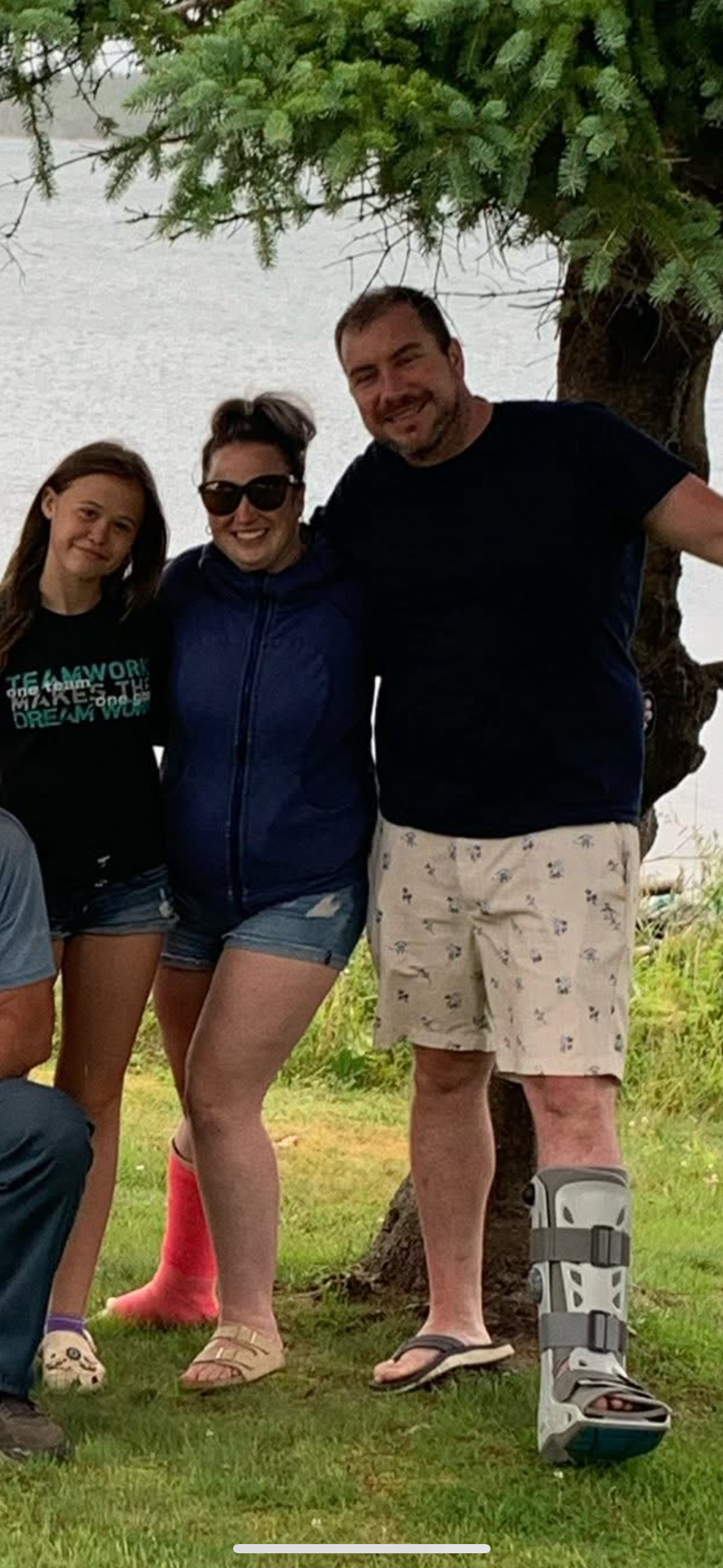 Keisha with a broken leg and John with a torn Achilles tendon.
