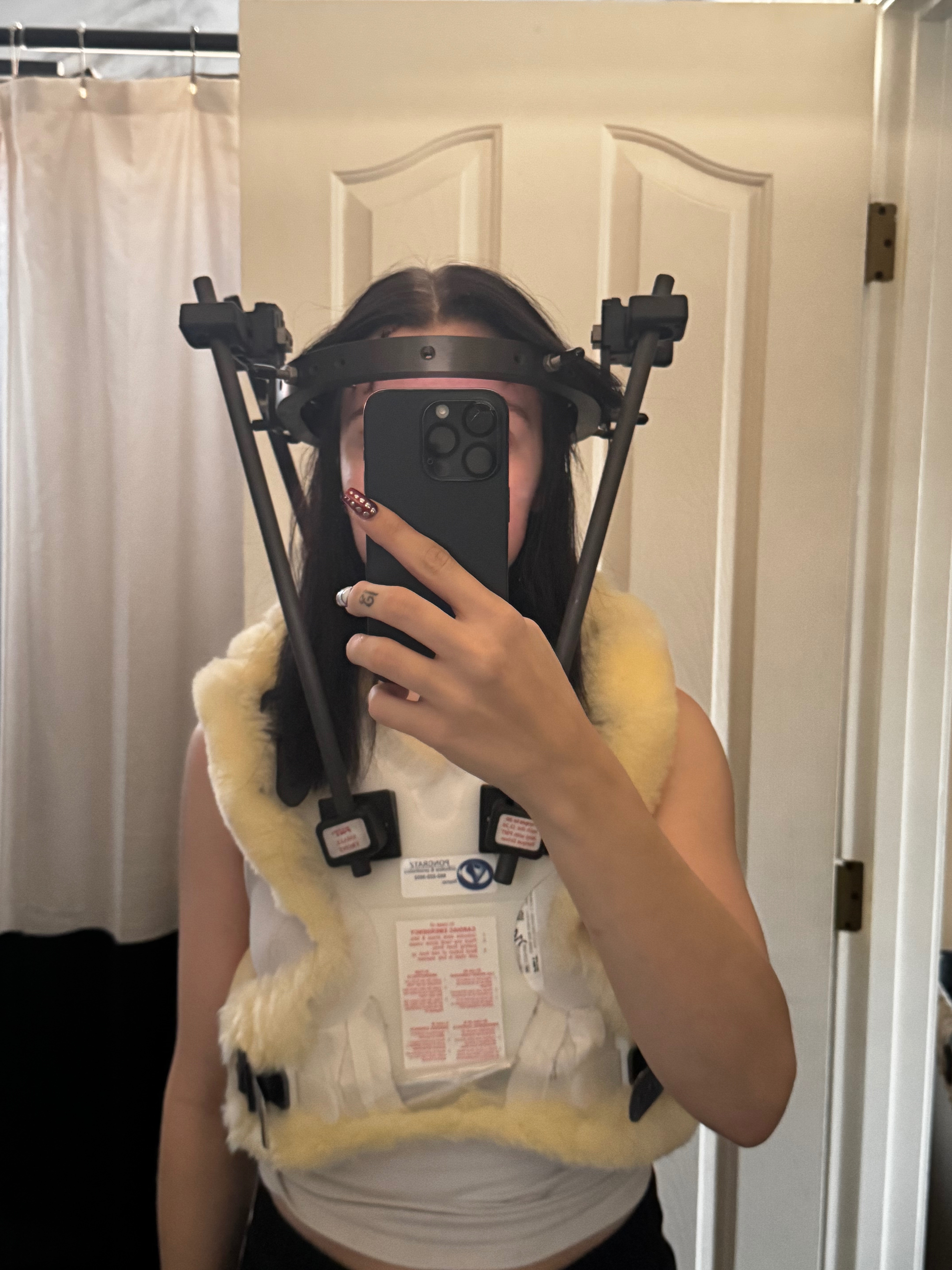 For those that don’t know me, my name is Jordyn. On October 30th, I was involved in a serious car accident, leaving me with extensive injuries. I spent a few days in the ICU with a broken nose, bruised bones all on the left side of my body, a fractured wrist, ankle, 25 stitches in my head, along with 3 broken bones in my neck. Prior to being discharged, I was placed in a spinal halo brace using 6 screws held into my skull.