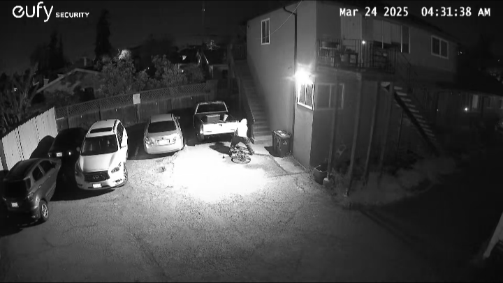 On March 24th, at odd hours in the night, a heartless thief came into our private apartment complex and stole my husband's work tools, a lot of which he used daily to provide for me and my daughter. We did call the police immediately after realizing at 8:00 in the morning, but the police said that this was a report that was to be filed online; they could not send out any sort of peace officer to take the report. Luckily, our apartment complex has security cameras that caught this thief red-handed stealing my husband's tools.