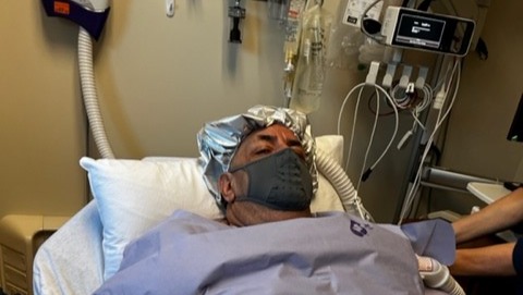 Pictured here is Jose during a recent ER/Hospital stay. He is now home recovering and preparing for chemotherapy to begin in August.