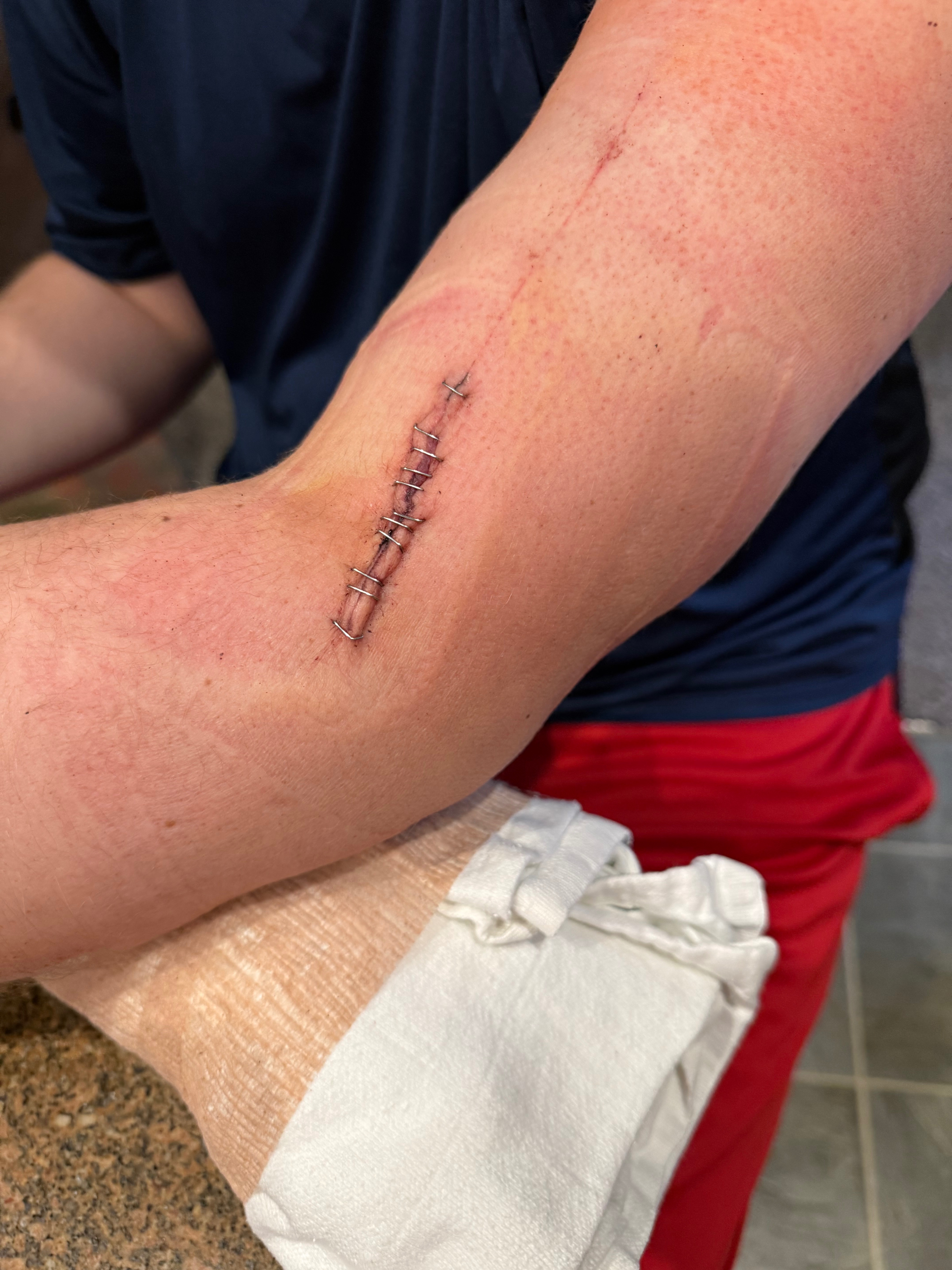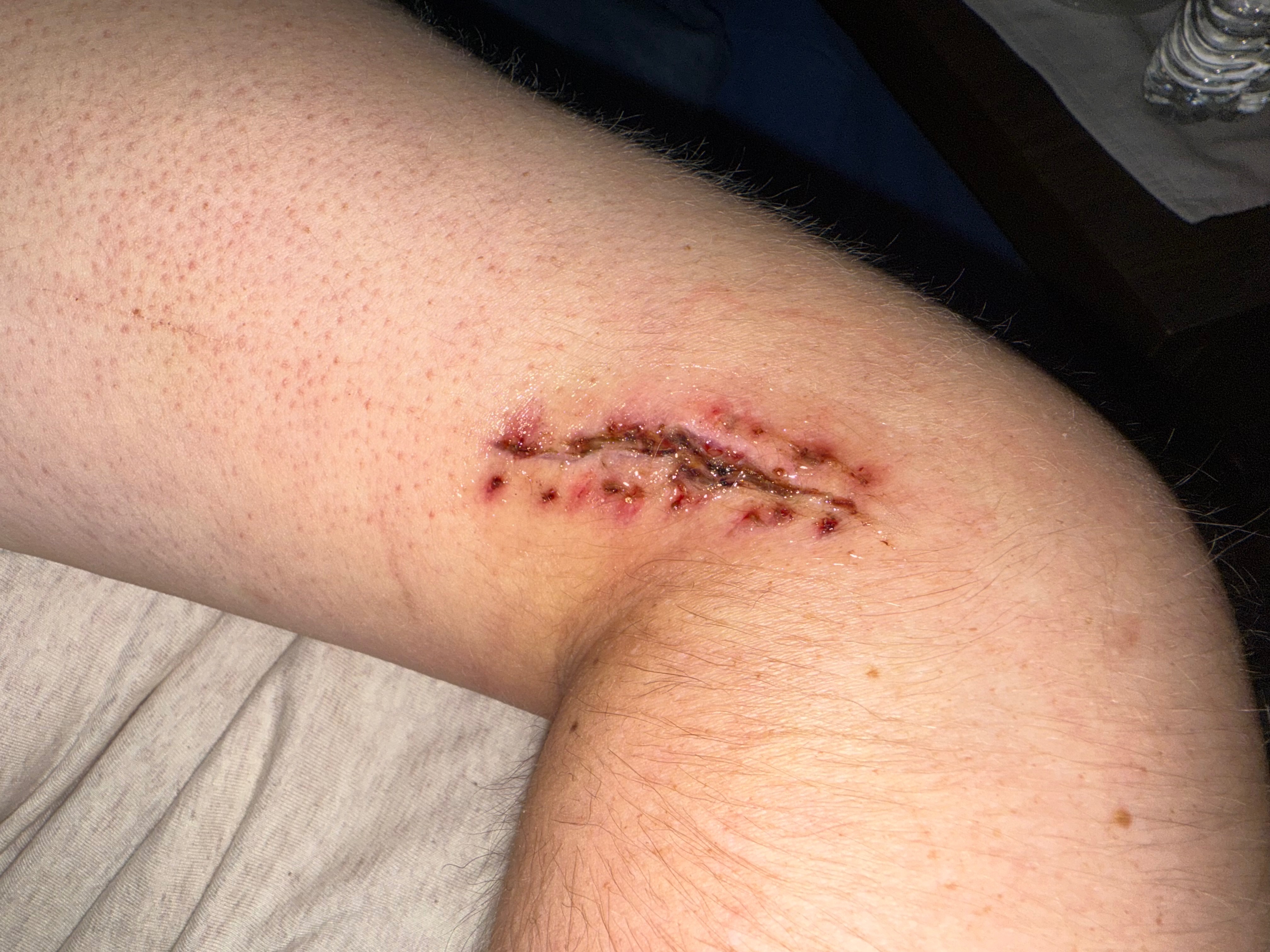 Hi, my name is Josh. On the night of November 15, I was stabbed while defending my girlfriend's friend from a guy who was clearly making her uncomfortable. He barely missed my artery. If it wasn’t for the tourniquet my girlfriend's sister made from a shirt wrapping around my arm that night, I would have most likely bled out, the doctors said. Because of how much blood I lost, I needed to have a blood transfusion. The wound was so deep it took around 2 hours for surgery to be completed, finishing with staples and stitches.