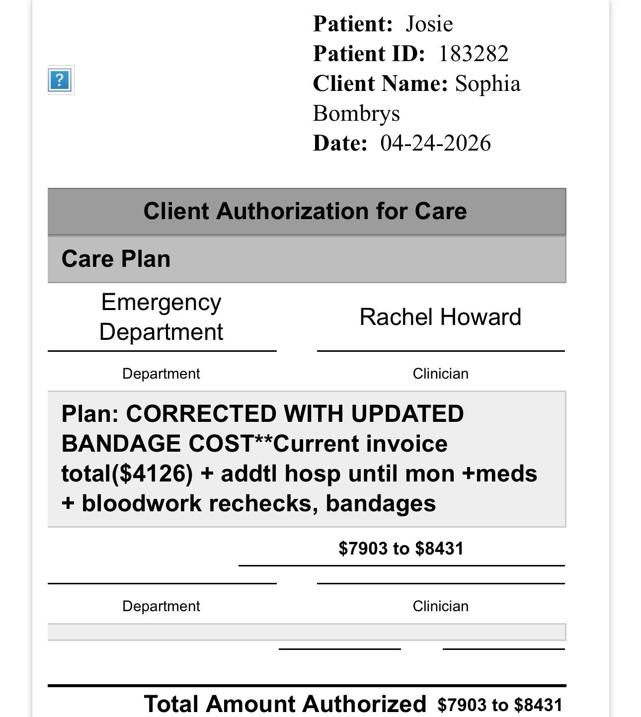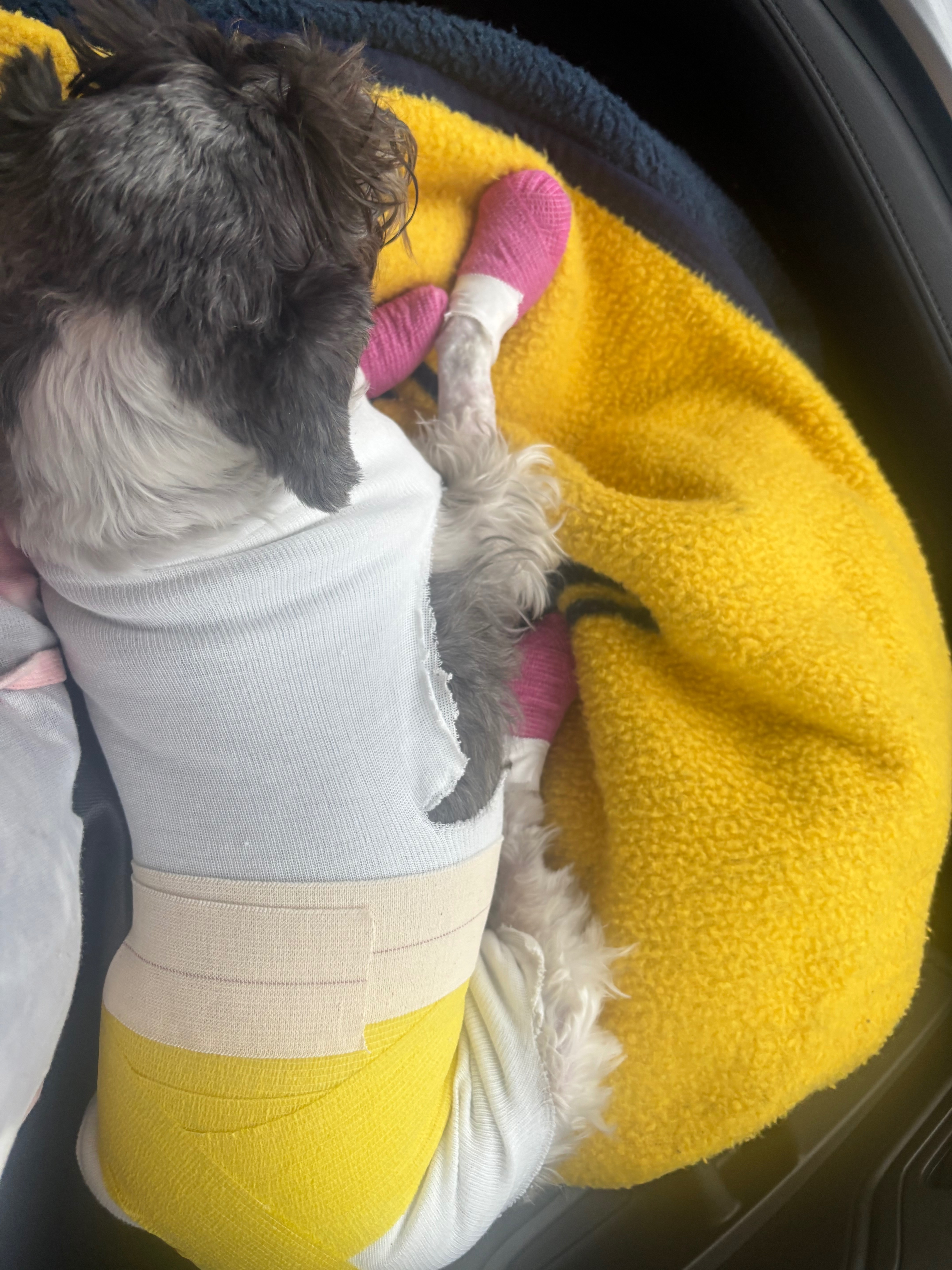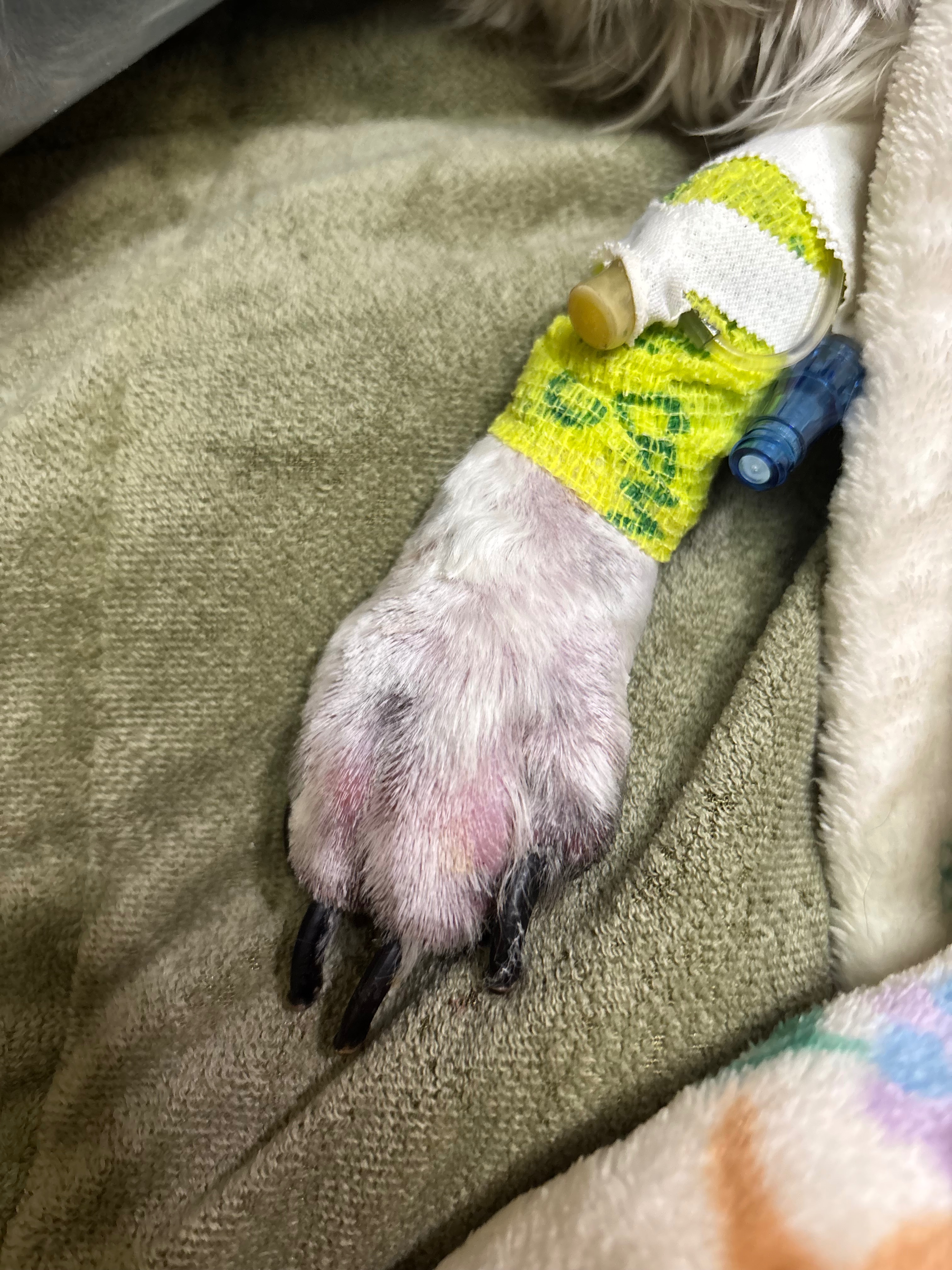 Hello everyone my name is Stacy I work with Sophia. As some may already know, her fur-daughter Josie had a horrible accident Tuesday afternoon. She was playing in the yard with the other pups and fell into a just extinguished fire pit due to her blindness. She is suffering from very severe burns on her stomach, vulva, and feet. Because of the severity of her injuries she is unable to walk or urinate and is in a great deal of pain. She had to be sent to a specialty veterinary hospital in Michigan to receive proper treatment which includes intravenous antibiotics, pain medication, and fluids. As well as dressing and observation of burns in order to avoid infection, catheterization due to swelling which has obstructed her ability to urinate.