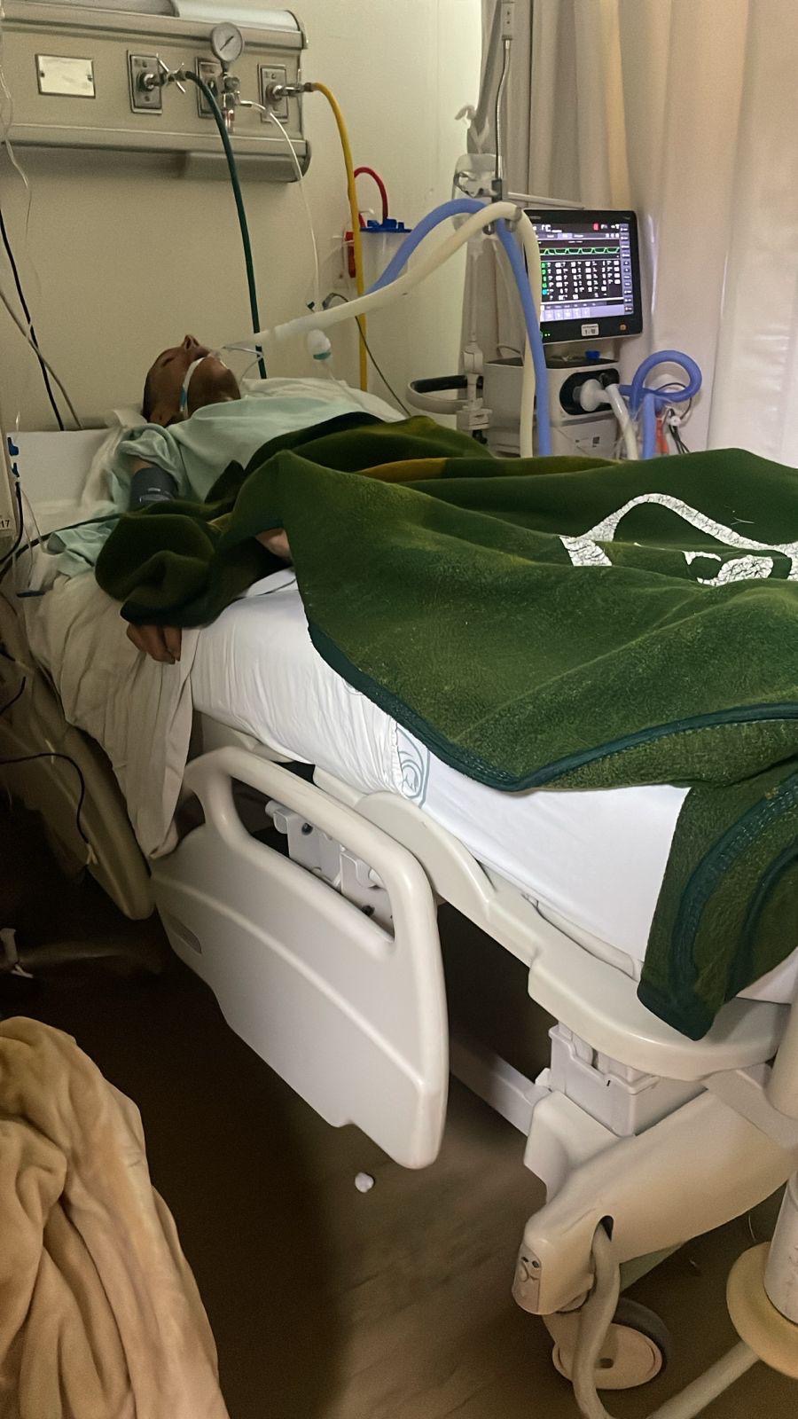 Juan Carlos, intubated for kidney failure; funds will pay transplant surgery and care