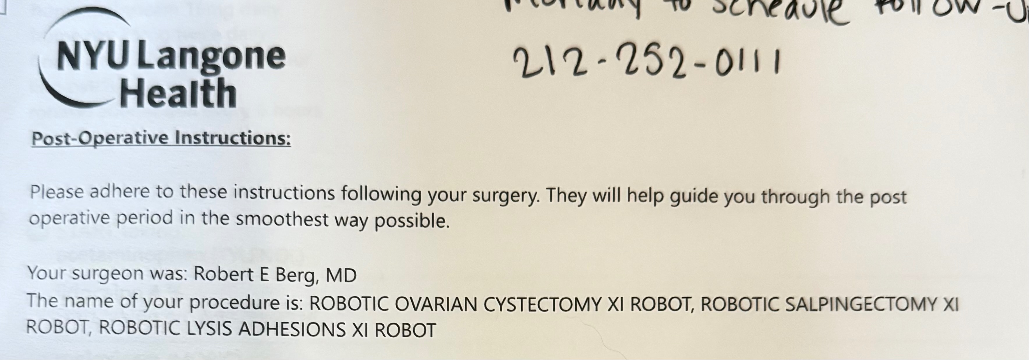 My surgery ended up being more complicated than anyone expected. It took nearly six hours. The surgeons removed a 7 cm cyst, repaired damage to my large intestine, and removed what they called a “disastrous” amount of adhesions. I was bleeding excessively, so they had to remove my fallopian tube. Thankfully, my ovary was saved — but now, I no longer have a tube.