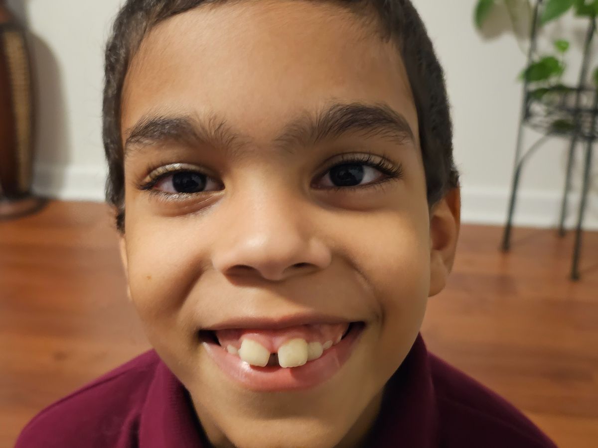 Hello, my name is Rebecca, and in the above picture is my son Julius. Julius is 10 years old. He is a bright, sweet, and amazing boy. He is very loving and loves to smile. Recently, he has tried to withhold his smile due to his teeth. He has become self-conscious and very aware of his mouth. He gets made fun of, and it hurts his feelings a lot.