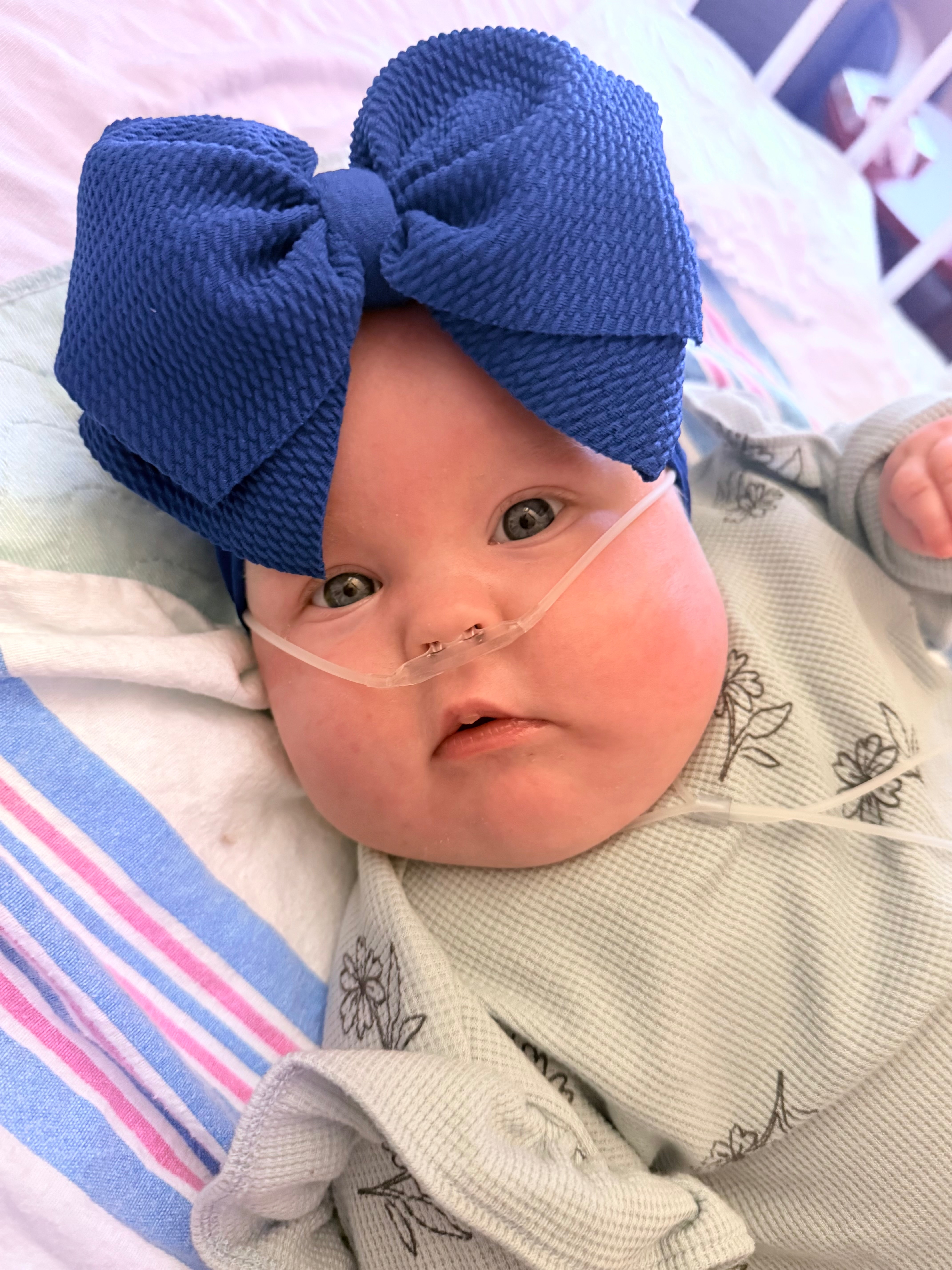 Surgery went amazing (about 3 weeks ago)! She tolerated her feedings after perfectly so we were able to come home the next day which they thought would not be possible due to her being on oxygen. Well the oxygen went the other way due to surgery! I’m sure some have noticed in her most recent pics there’s no more tubes and wires on her face she does still require oxygen however it’s very little and mainly only at night, her levels are monitored in a monitor so I can get her oxygen quickly if something would go wrong for her. She has a pulmonary appointment next month and hopefully we will be able to come off oxygen completely