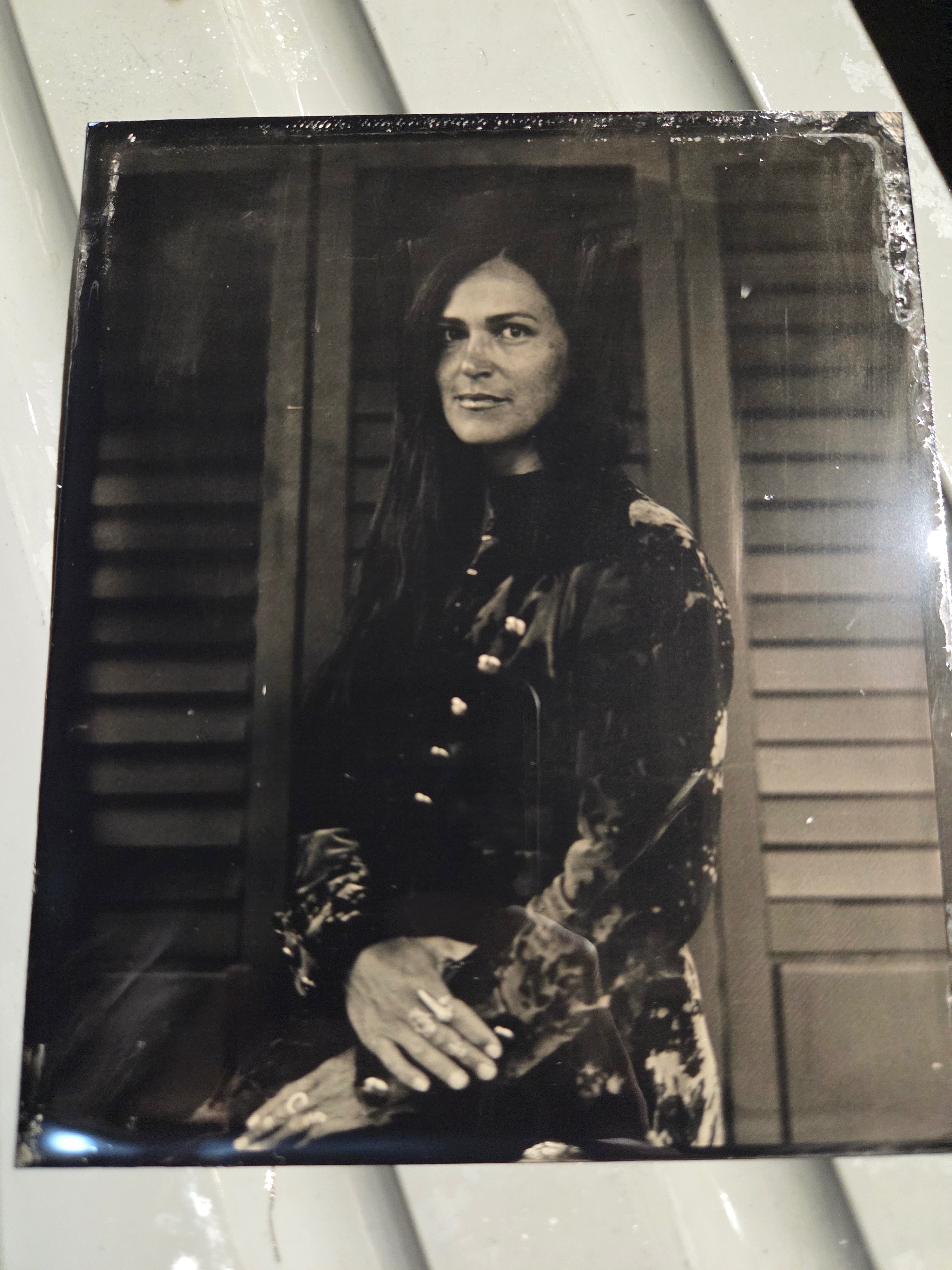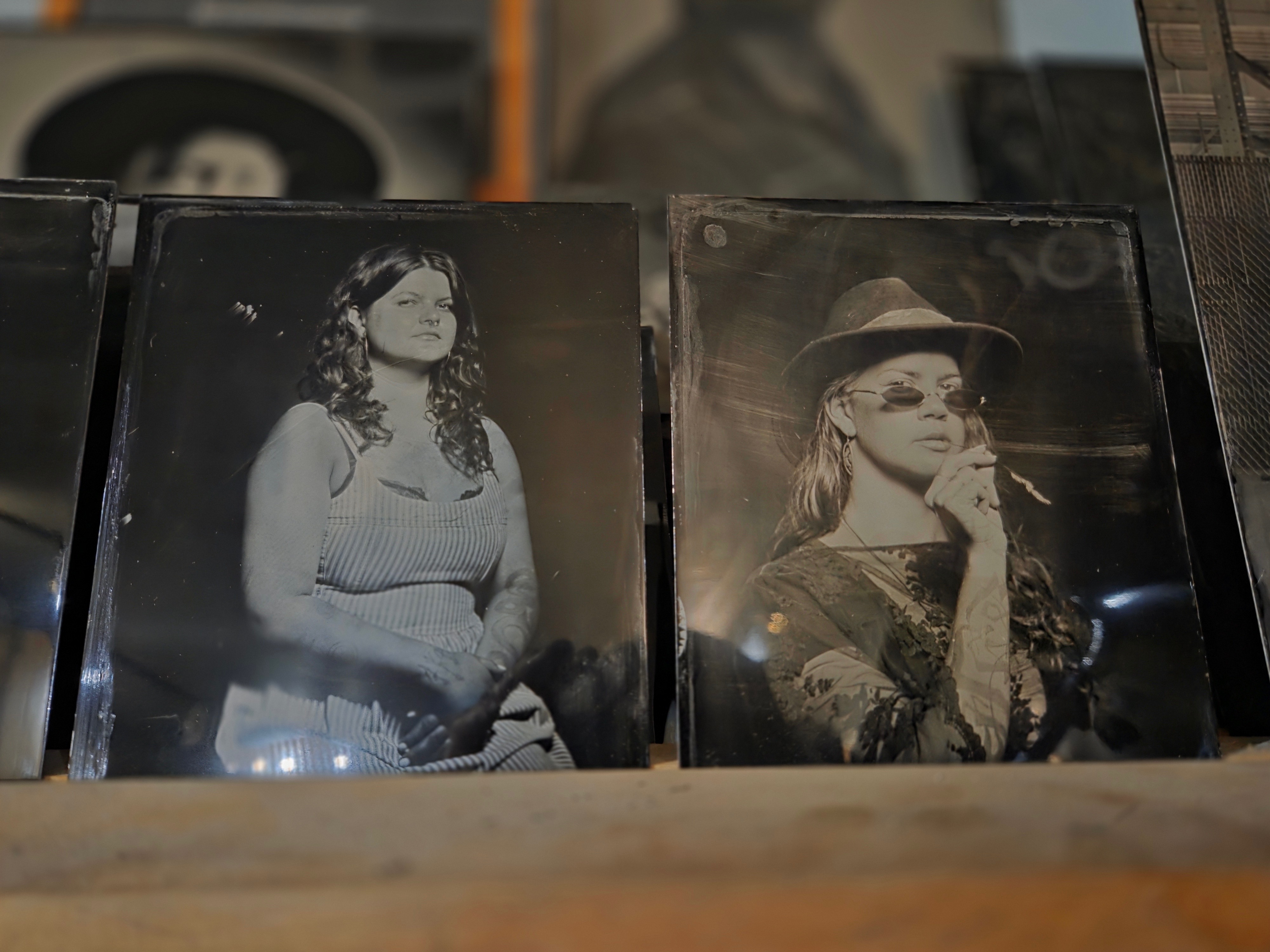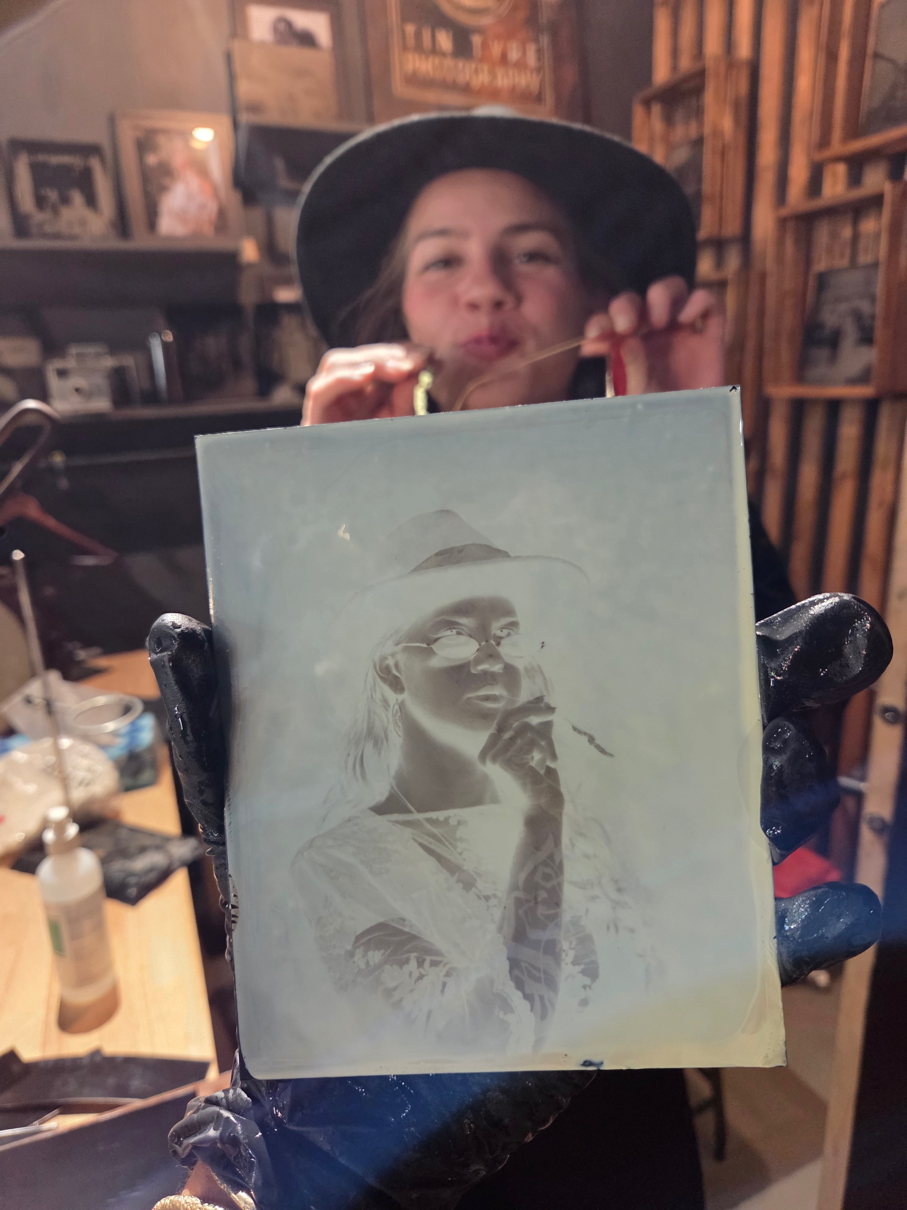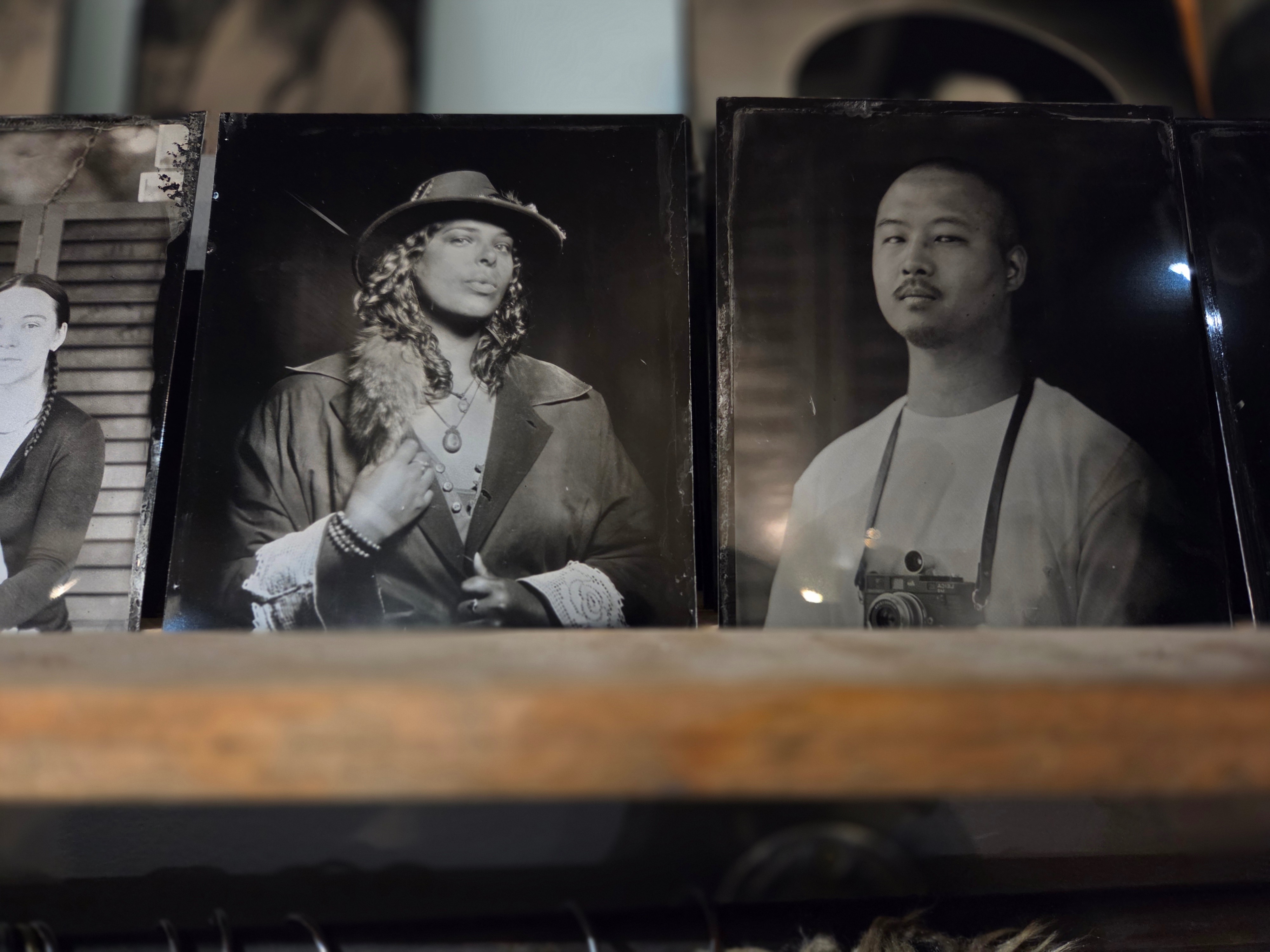 Syd is not only a remarkable photographer but a generous teacher. In the quiet hum of his studio, he poured out his knowledge, guiding me through the alchemical dance of light and chemistry. With hands-on training, I shot portrait after portrait, watching each face bloom onto plates, like ghosts summoned from another time. Each portrait felt like a whispered conversation between the past and present .. a world held in a gaze.