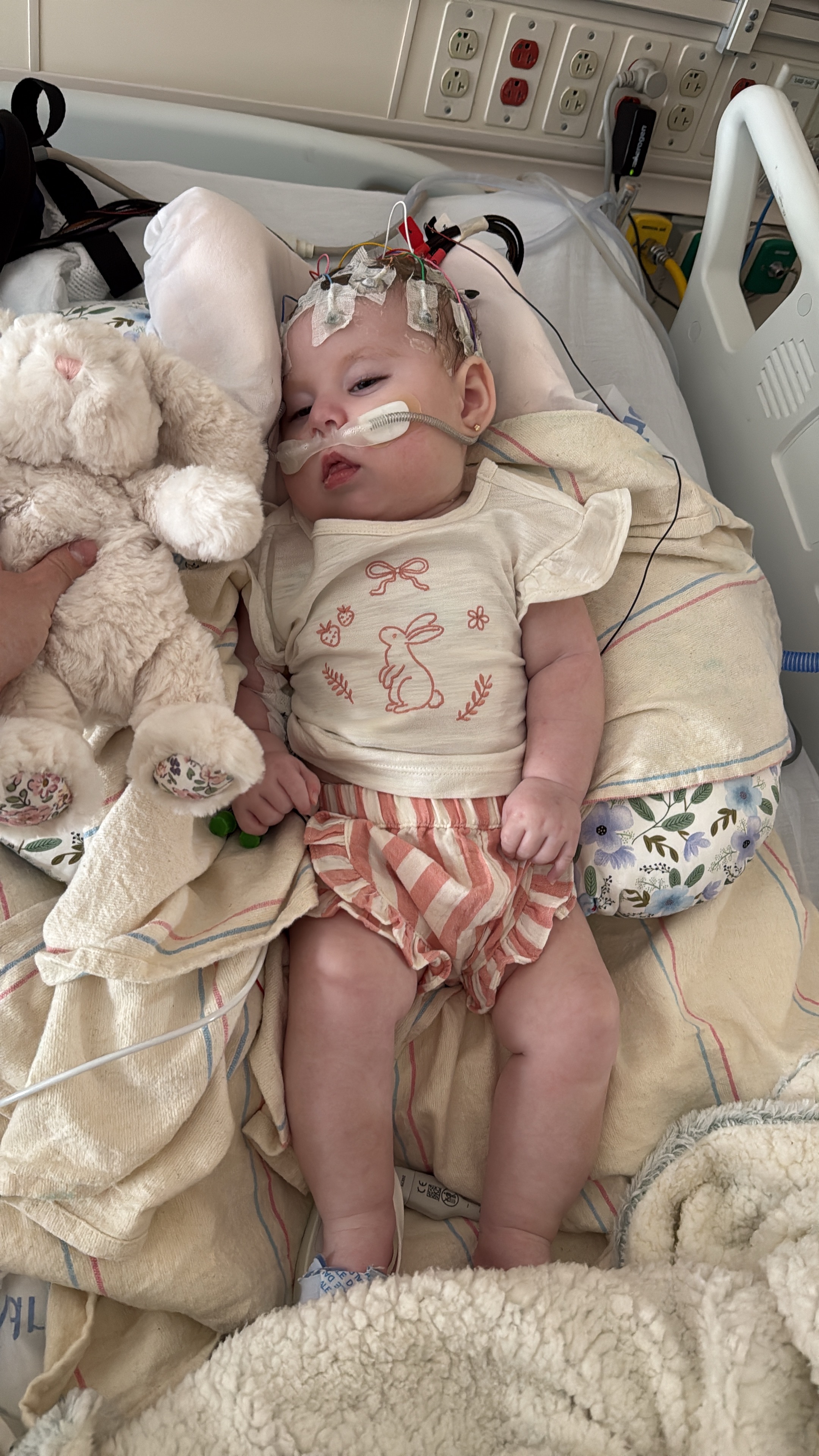 My daughter's name is Kaylee Marie Benitez. She is 6 months old and has KCNT1 epilepsy. She was diagnosed at 3 months old. We've been discharged about 2 times at Millers Long Beach from December to January, and now we're at UCLA Westwood from January till March. As parents, we've been challenged with many medications and around-the-clock care for her. She's had many seizures, and we're trying anything we can to help control them.