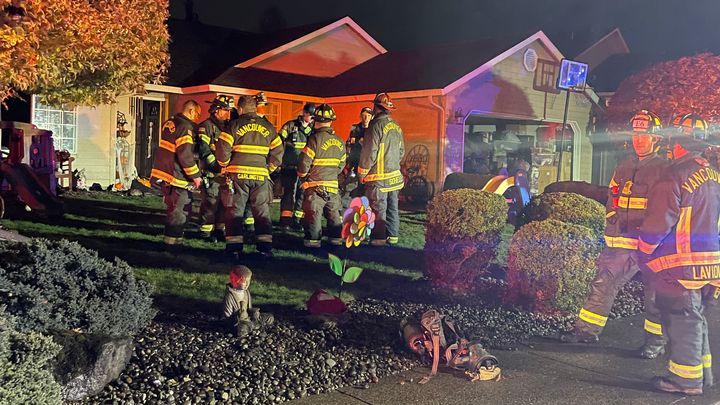 My mom woke up to go to the bathroom and saw smoke, then Fire alarms went off, I woke up ran down the hall to see my son jump out of bed over flames. It was so strong we could not dump water on it fast enough and had to evacuate and call 911. My oldest was able to get out unharmed, he grabbed the baby and the toddler and went outside to the car while I tried to put the fire out. My mom was filling pots of water and I went to the room and splashed it on the main part of the fire. The more water I used it seemed like the bigger the fire got and I had to give up and evacuate everyone. We all got outside into our cars and waited while we watched our house burn and the firefighters do their thing.