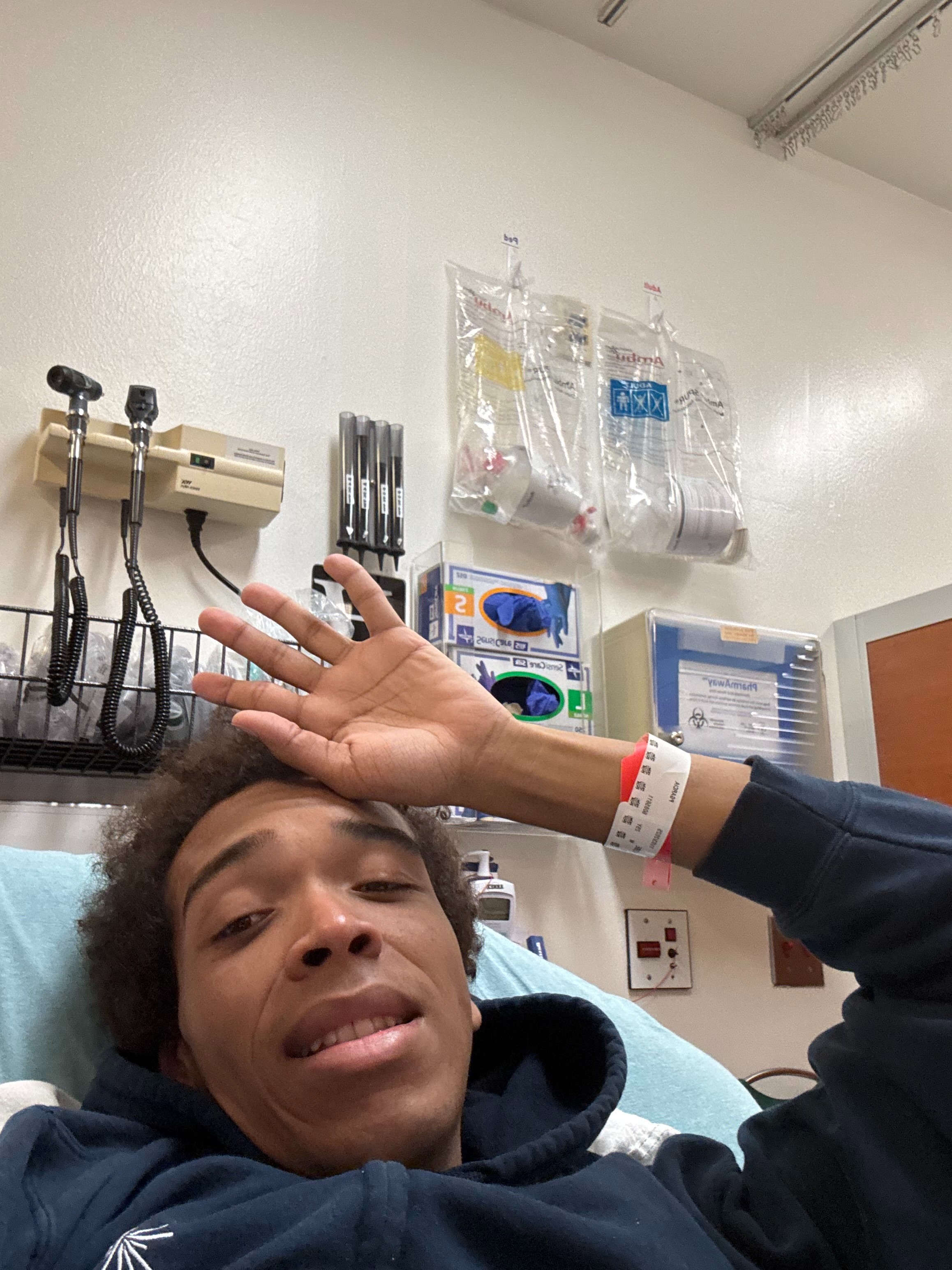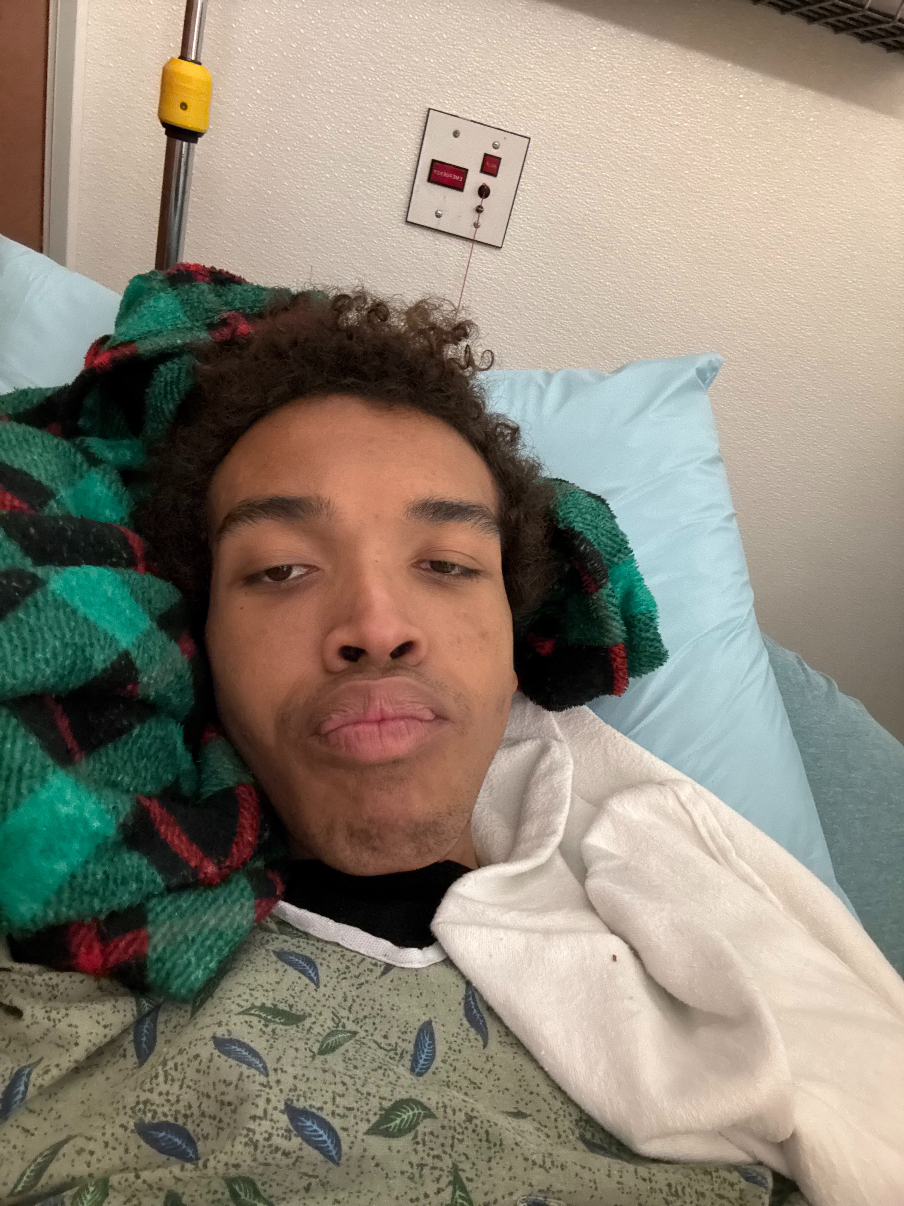 November 25 is a day where everything started to feel the worst. My pain scale was at a 10 with all the body aches I had. I went to the ER at Torrance Memorial Hospital around 8:30 PM. I remember waiting in the wheel chair, crying because of how overwhelming it all was; I couldn't see out of my right eye, a terrible migraine, and severe body aches. Blood work, an X-ray and a CT scan with contrast was conducted while I waited for a room. I was admitted around 5 am, and received some results: my red blood cell count was strikingly low (23 out of 200).
