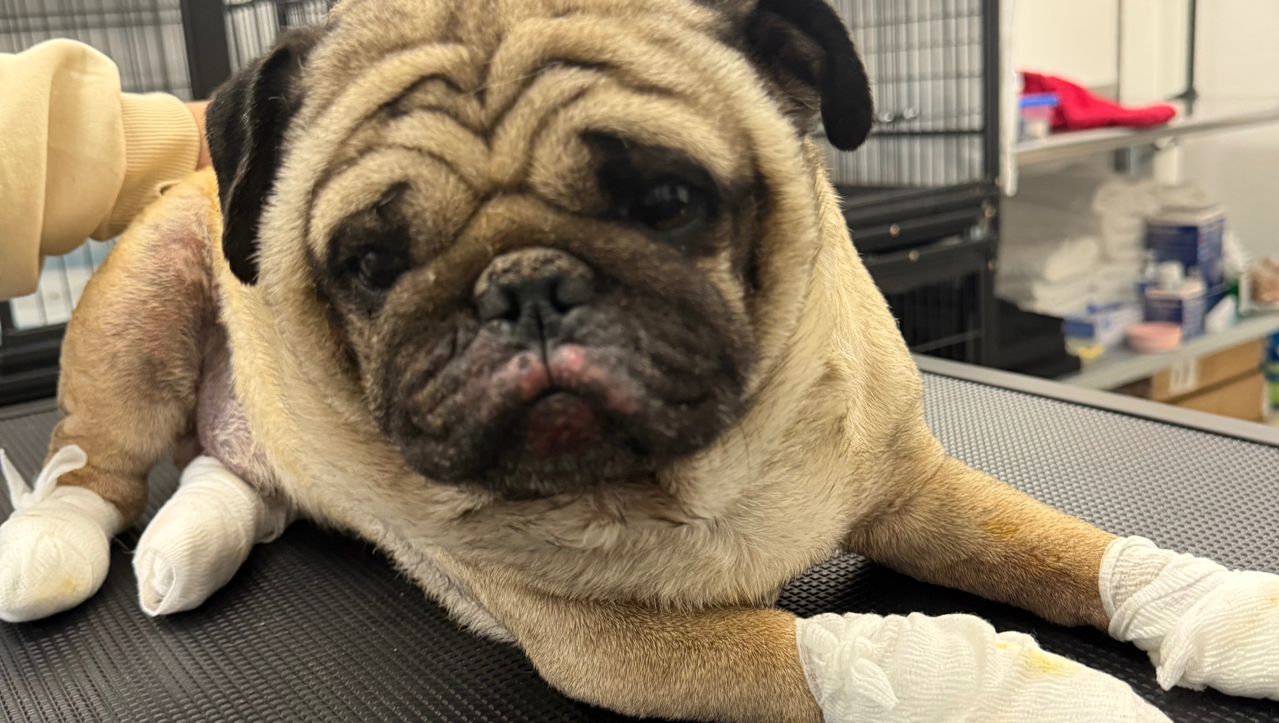 hi everyone, on New Year’s Day my dog koko sadly got 3rd degree burns on his body and paws .we’ve rushed him to the hospital for treatment and used what we can; now we need help to continue his treatment to get better and heal. Anything helps, if you can please share and send prayers.