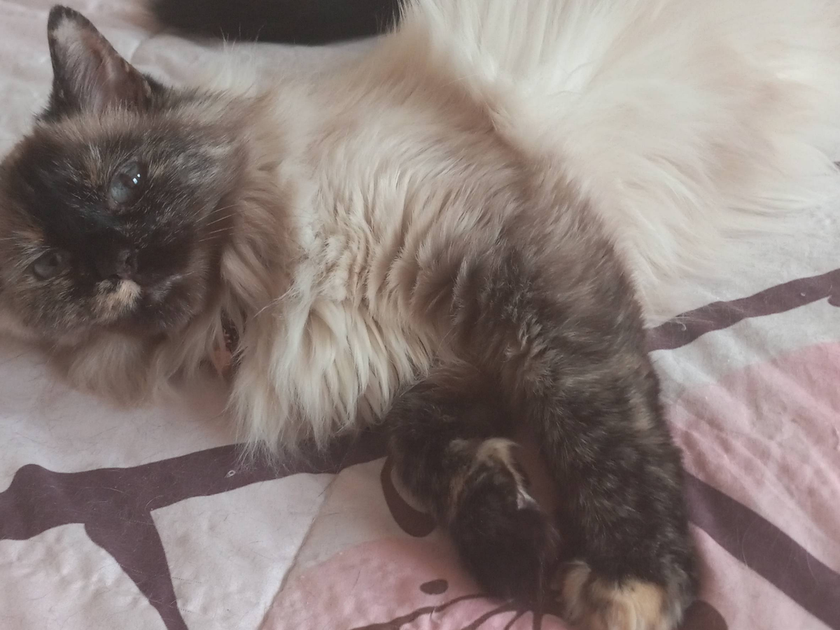 Mimi has recently reached 12 years of age, and is getting to senior age for a cat. She's recently been bombarded with blood in her urine... we took her the first time, but since we are struggling financially, myself and my sister had to take out a loan. Not only were we struggling to pay our bills before due to the recent downfall of the economy and my own loss of a job, but we are no longer able to pay more than our utilities, internet, and rent monthly. The loan took care of the first instance of blood in her urine for a month or so, but now we are fighting another round of blood in her urine, as well as her deteriorating health. She has lost weight and the doctor told us that she needs more in depth testing due to her muscles atrophying.