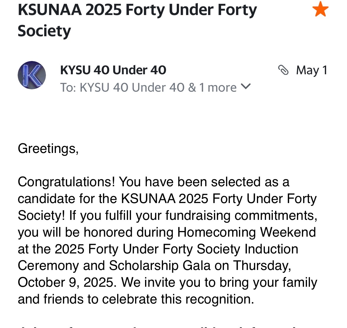 It is with gratitude that I have been selected as a candidate for the Kentucky State University National Alumni Association (KSUNAA) 2025 Forty Under Forty Society. The Forty Under Forty Society highlights the accolades of alumni and the extraordinary work they do in their communities.