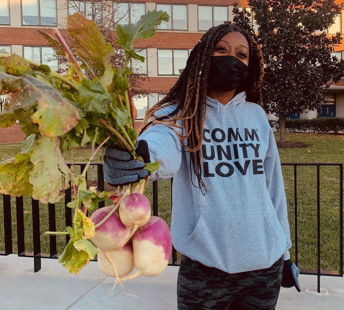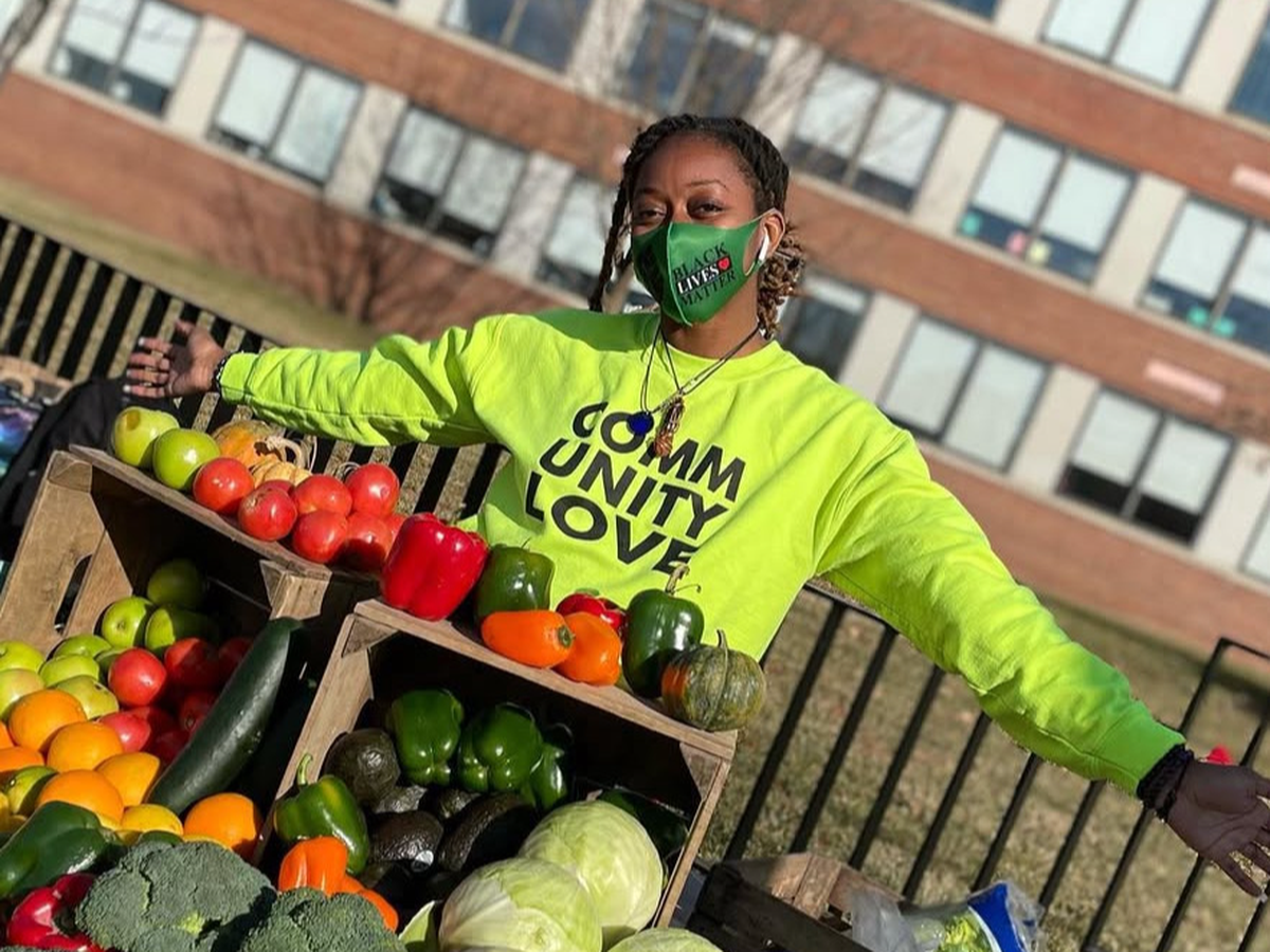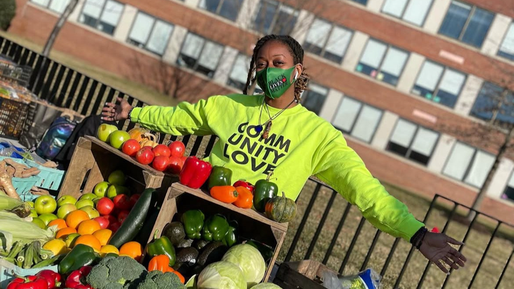 When she was let go from a service industry gig at the start of the COVID-19 pandemic, Kya cooked vegan meals for folks protesting George Floyd's murder. She then started up weekly distributions of free veggies and hygiene items for the broader DC community in Wards 7 and 8, launching her non-profit, Kyanite Kitchen. See below for Kya's Washington Post feature.