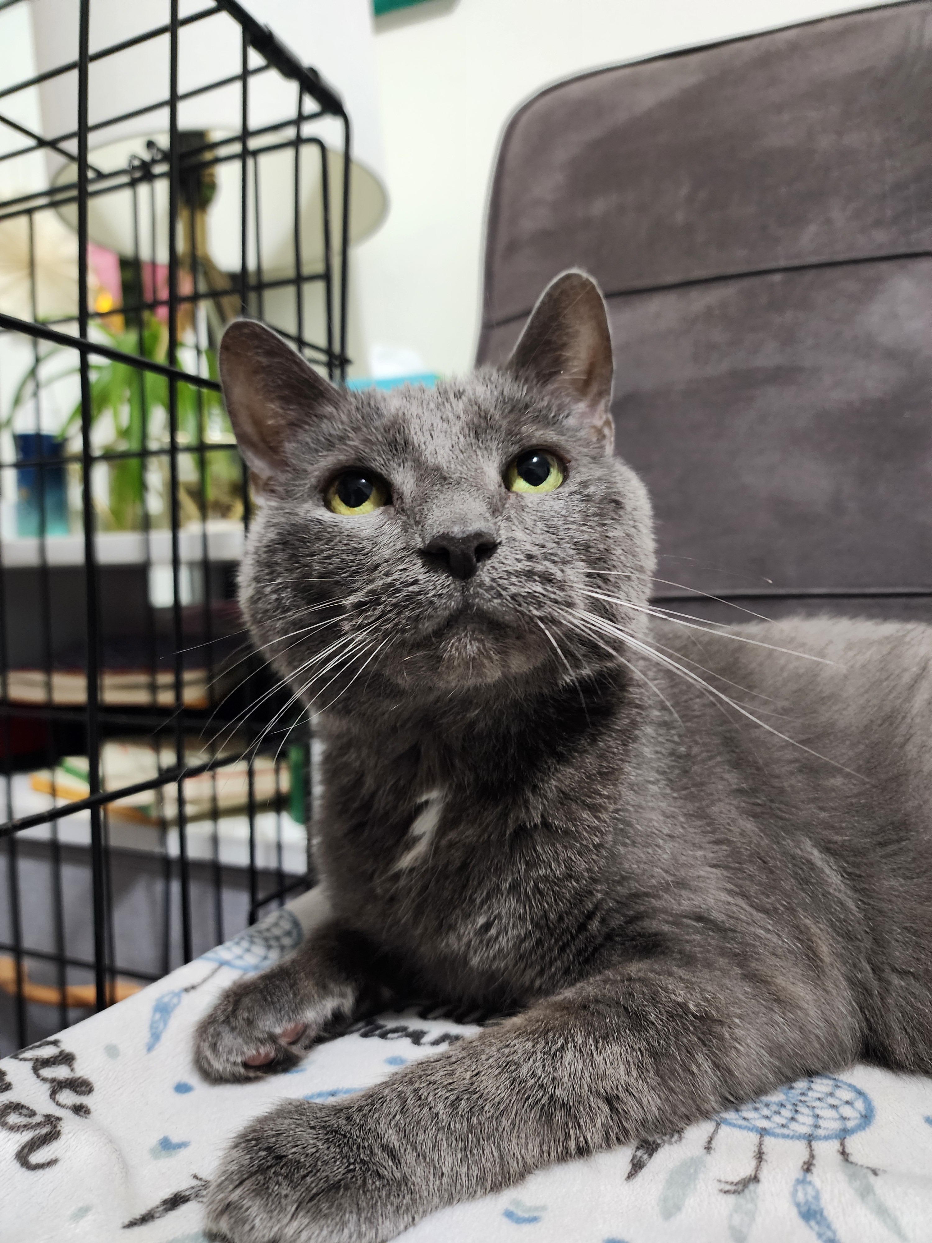 Hi there, let me introduce you to Layla. She's a Russian Blue girl who was given away by a family in the Bronx. Currently, she is being fostered and cared for by a low income Brooklynite.